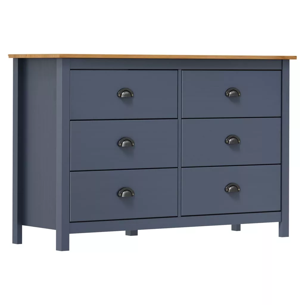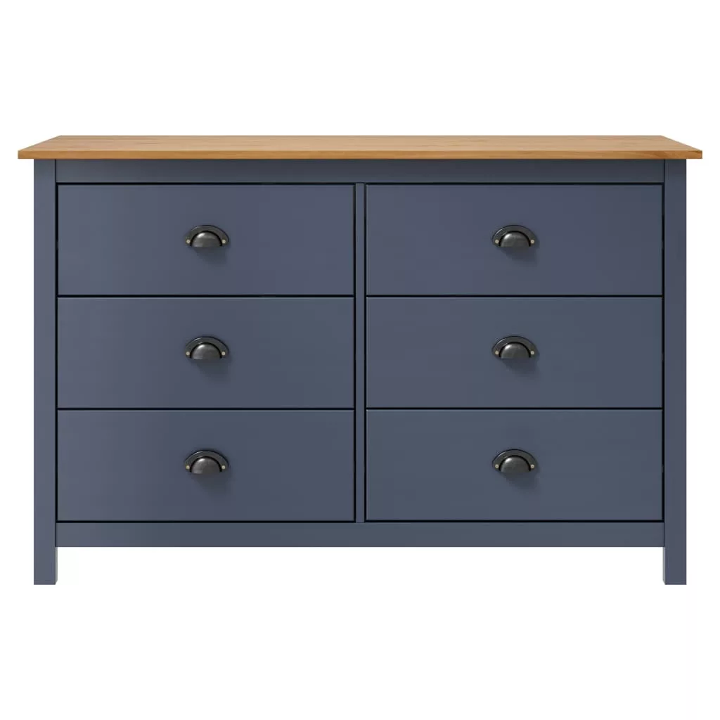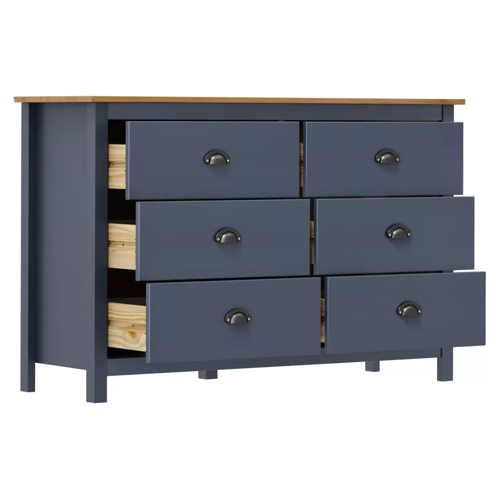 Tartson mindent tisztán és rendezetten a nappalijában elegáns tálalószekrényünk segítségével. Ez a praktikus tálalószekrény kielégíti különféle igényeit, és a szobája ideális kiegészítője lesz. A tömör fenyőfából készült tálalószekrény rendkívül stabil. 6 zökkenőmentesen gördülő fiókkal rendelkezik, amelyek elegendő helyet biztosítanak a tárgyak elérhető közelségben tartásához. A széles tetejére gyümölcskosarat helyezhet, vagy dísztárgyakat, például képkereteket vagy cserepes növényeket. Ez a tárolószekrény könnyen összeszerelhető.