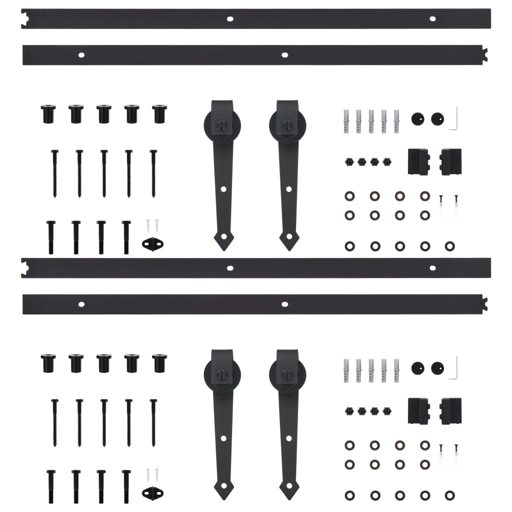 2 darabos fekete acél tolóajtó-szerelvényszett 200 cm