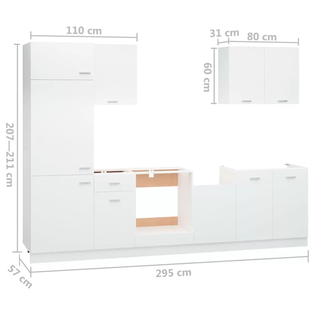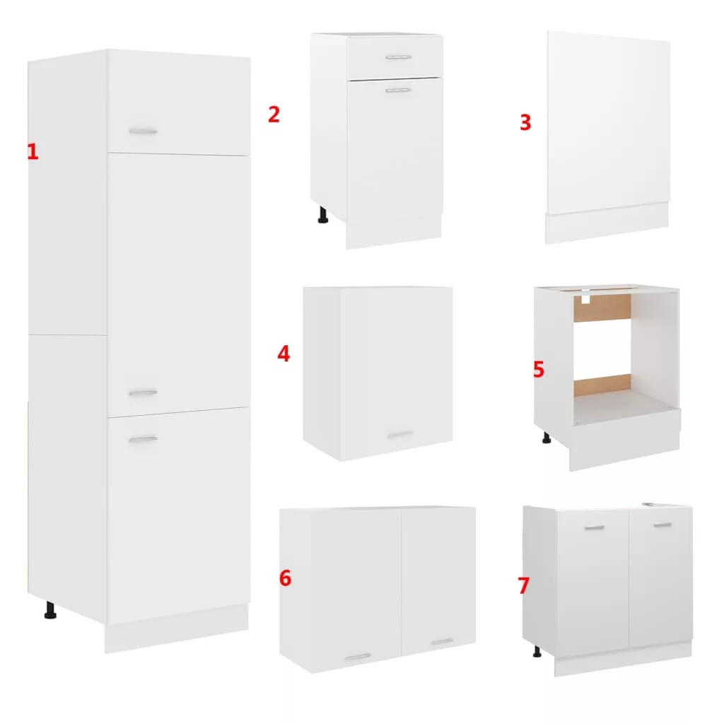 7 részes fehér forgácslap konyhai szekrénygarnitúra