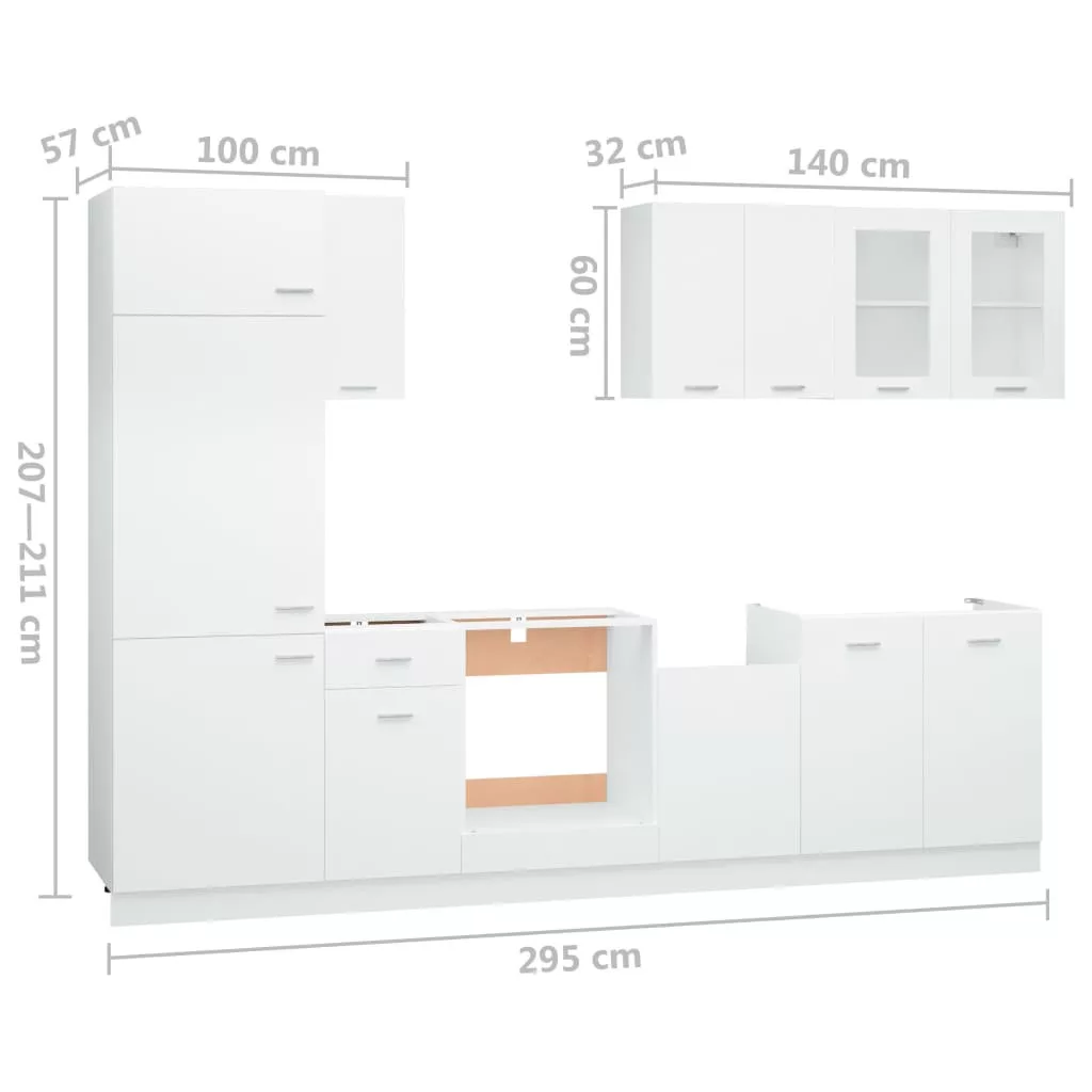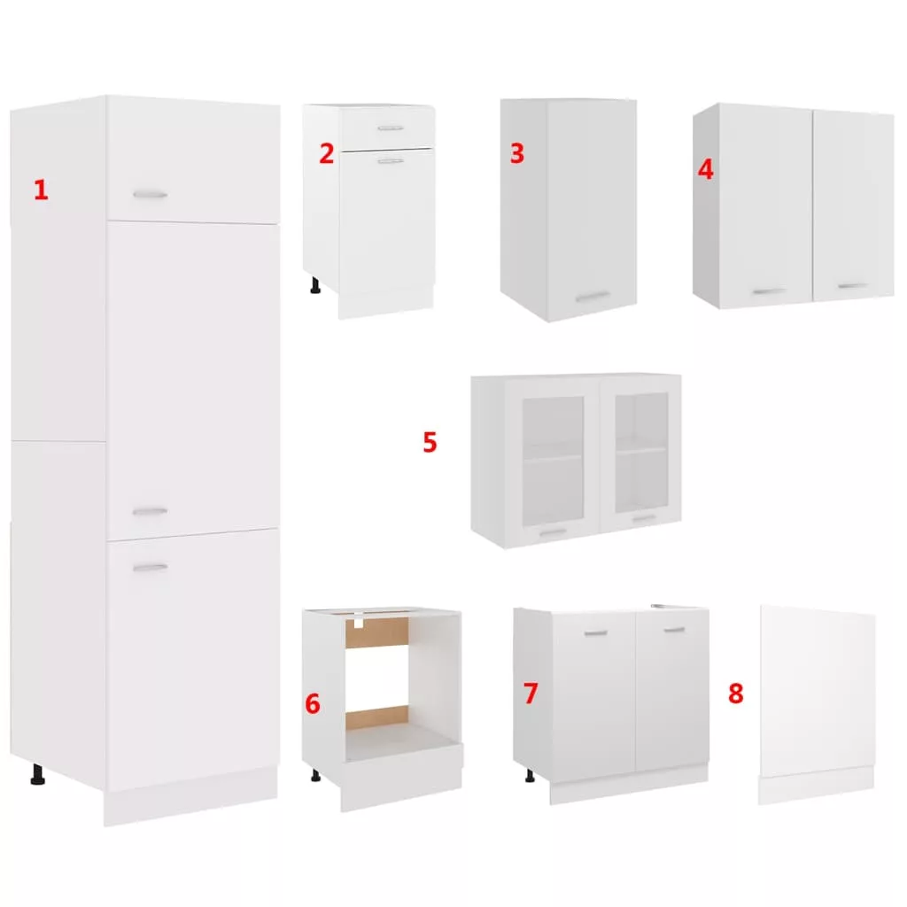 8 részes fehér forgácslap konyhai szekrénygarnitúra