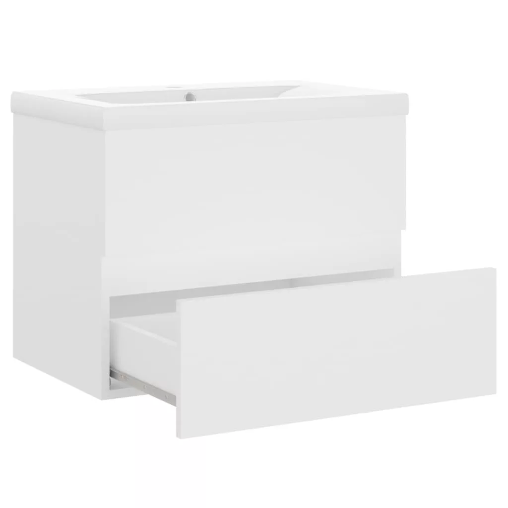 fehér szerelt fa mosdószekrény beépített mosdókagylóval