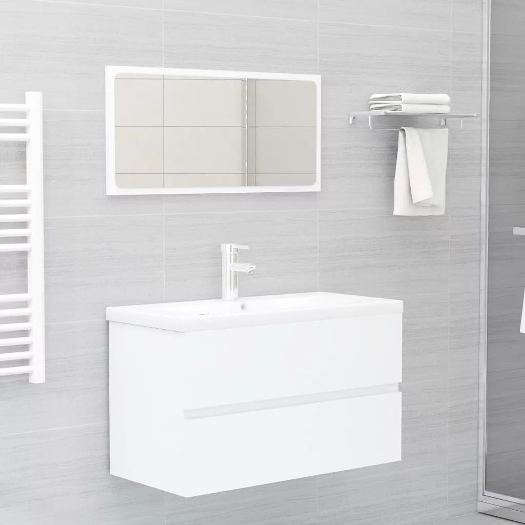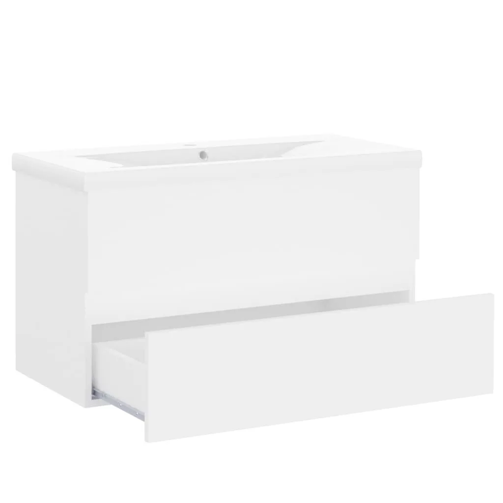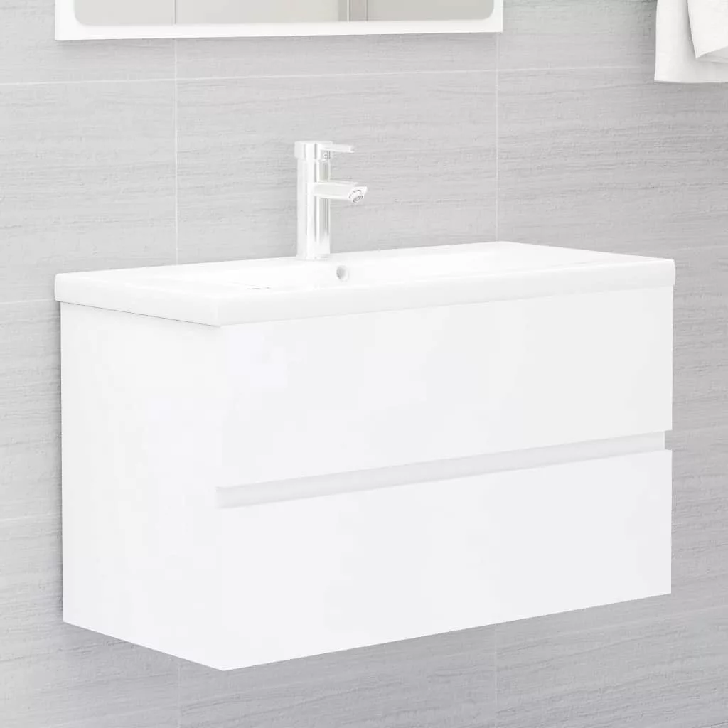 fehér szerelt fa mosdószekrény beépített mosdókagylóval