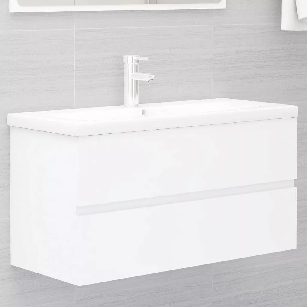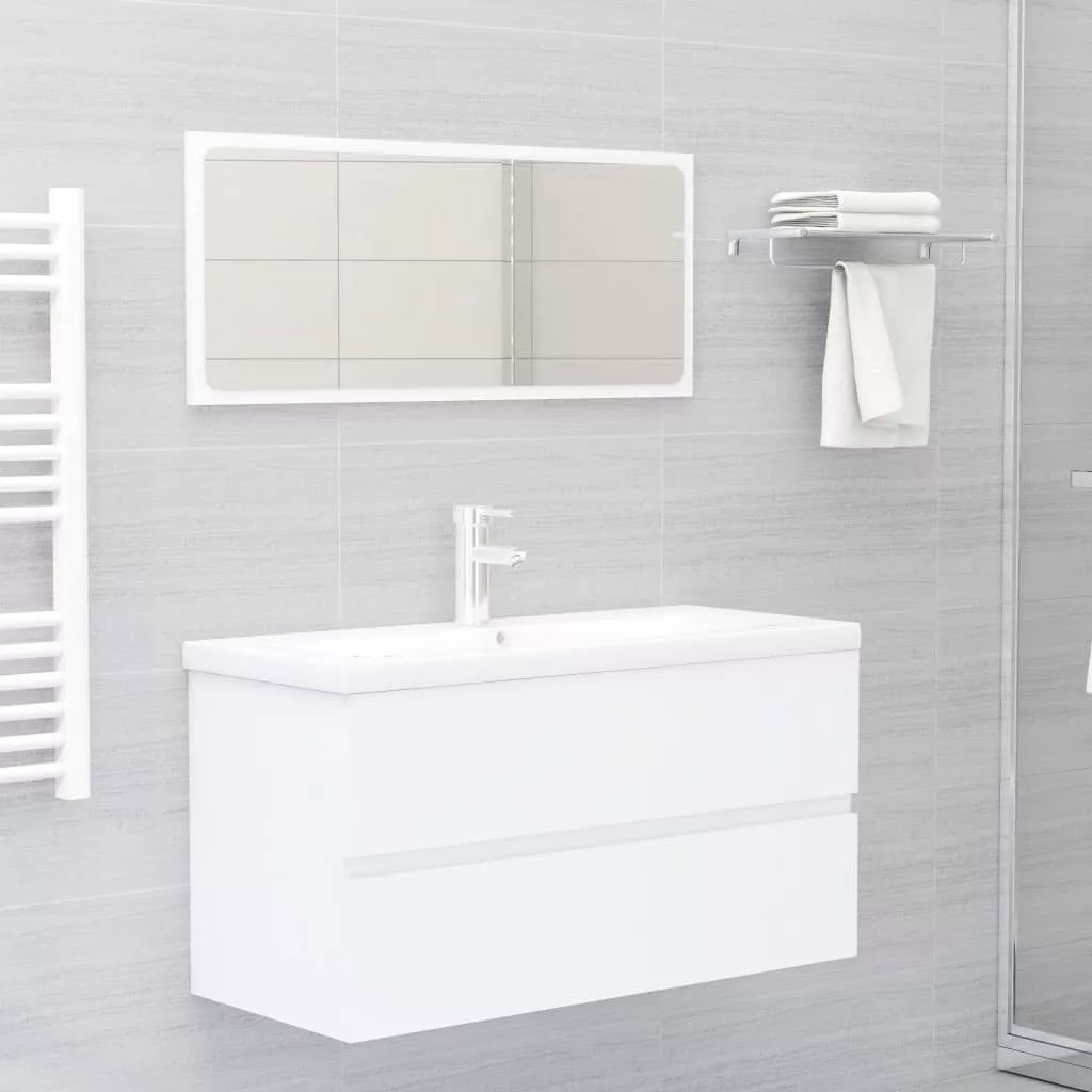 fehér szerelt fa mosdószekrény beépített mosdókagylóval