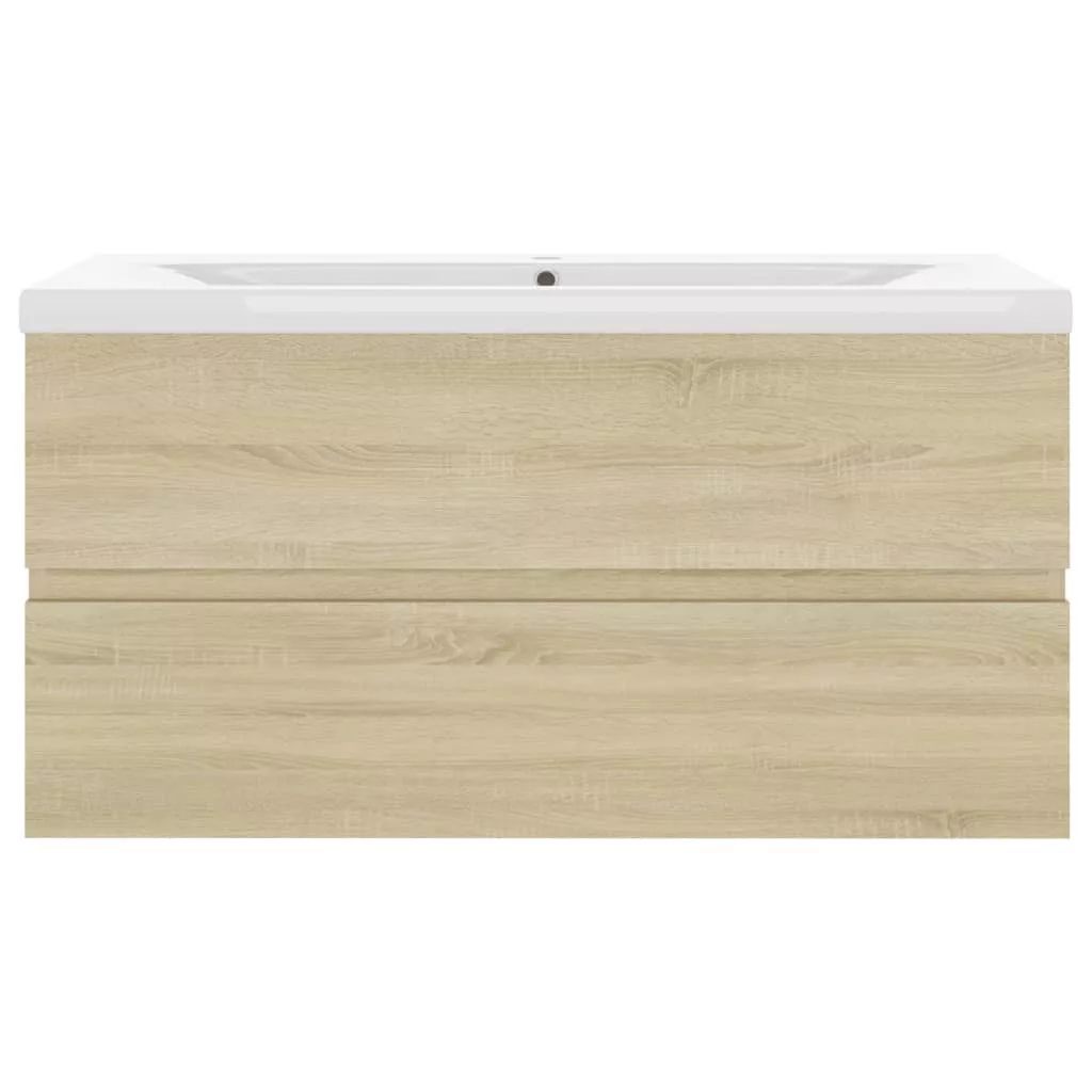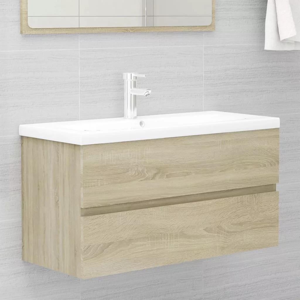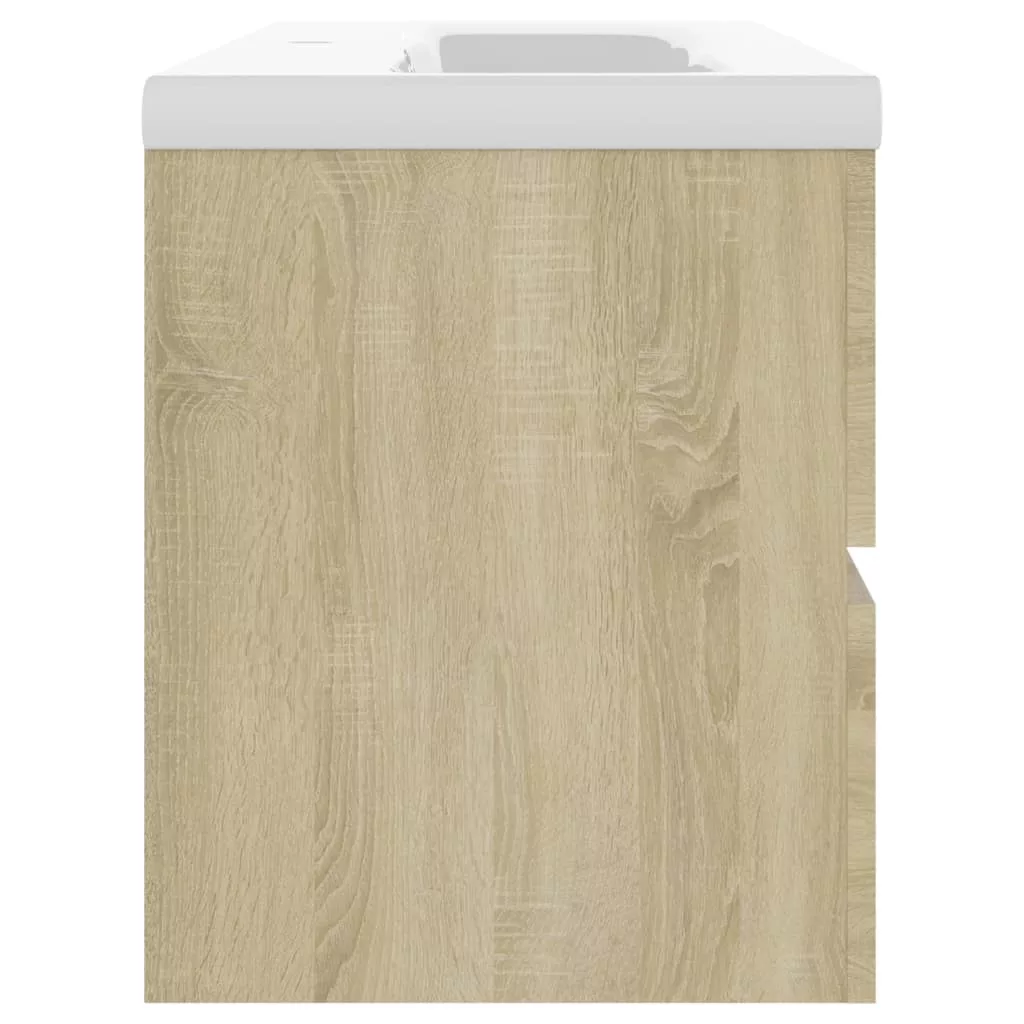 tölgyszínű szerelt fa mosdószekrény beépített mosdókagylóval