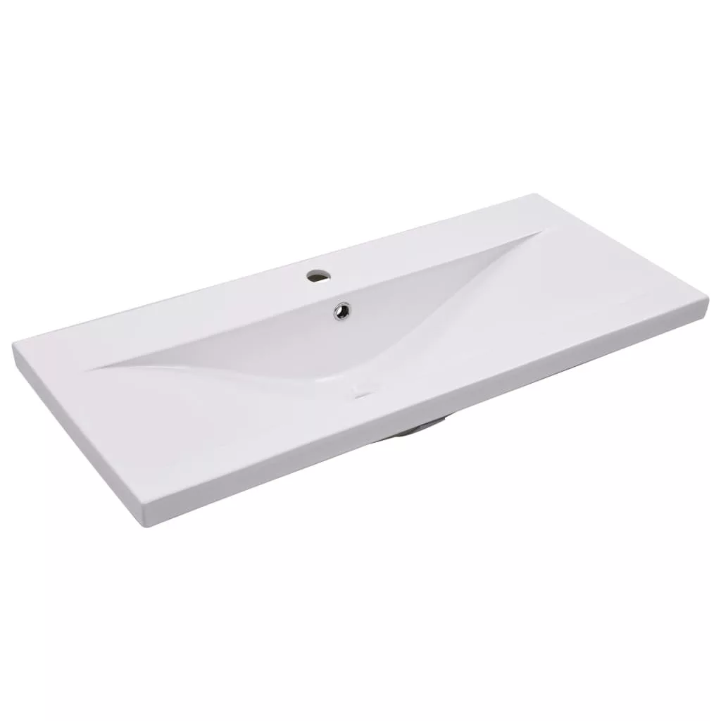 Ez a beépített mosdókagylóval ellátott mosdószekrény feltűnő és tiszta megjelenésével tökéletesen illik fürdőszobájába vagy mosdójába. A tárolószekrény 1 fiókkal rendelkezik, így bőséges helyet kínál a fürdőszobai tárgyak tárolására. Tökéletesen elfér a mosdókagyló alatt, és igen kényelmessé teszi a fürdőszobai tárolást. A kerámiából készült mosdókagyló nemcsak a mindennapi használatra szolgáló edényként, hanem a lakótér díszeként is szolgálhat. Trendteremtő és kortárs kialakításának köszönhetően ez a mosdókagyló minden bizonnyal bármilyen dekorációhoz illik. Egy túlfolyóval is fel lett szerelve, hogy a víz kifolyhasson, ha túlságosan megtelt. Mázas felülete modern, mégis elegáns dizájnt kölcsönöz magának. Ezenkívül a szekrény és a mosdókagyló könnyen tisztítható egy nedves ruhával. Figyelem: a szállítás a csapot és a lefolyót nem tartalmazza. A gyermekeket felügyelni kell, hogy ne játszhassanak az eszközzel. Tartsd távol a gyermekeket a szerelési területtől. Figyelem: Olvasd el alaposan az utasításokat használat előtt, és tartsd meg későbbi hivatkozásra.