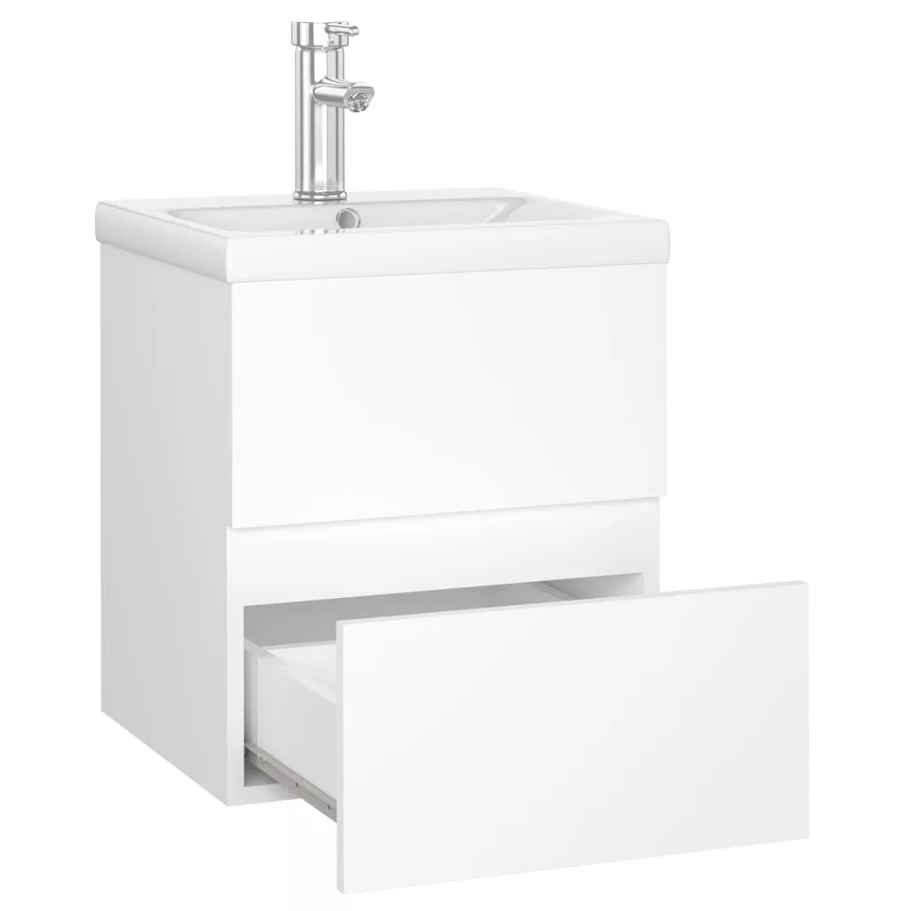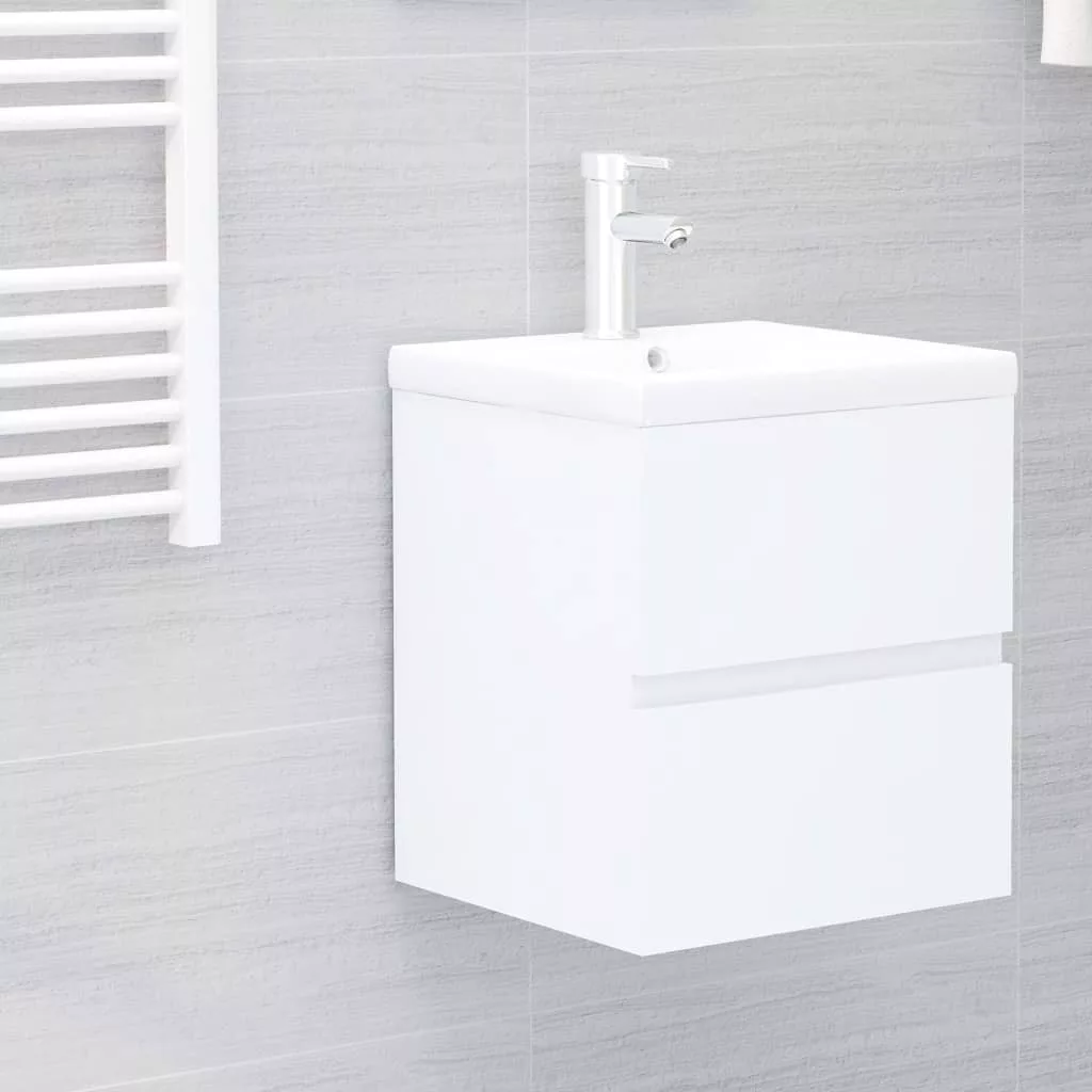 fehér szerelt fa mosdószekrény beépített mosdókagylóval