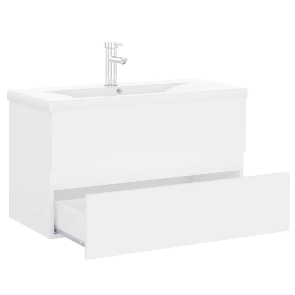 fehér szerelt fa mosdószekrény beépített mosdókagylóval