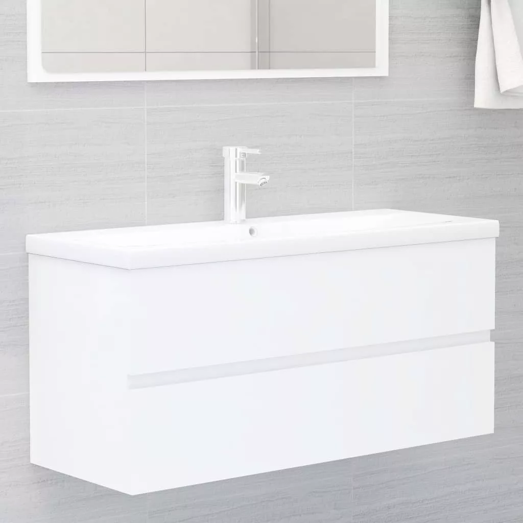 fehér szerelt fa mosdószekrény beépített mosdókagylóval