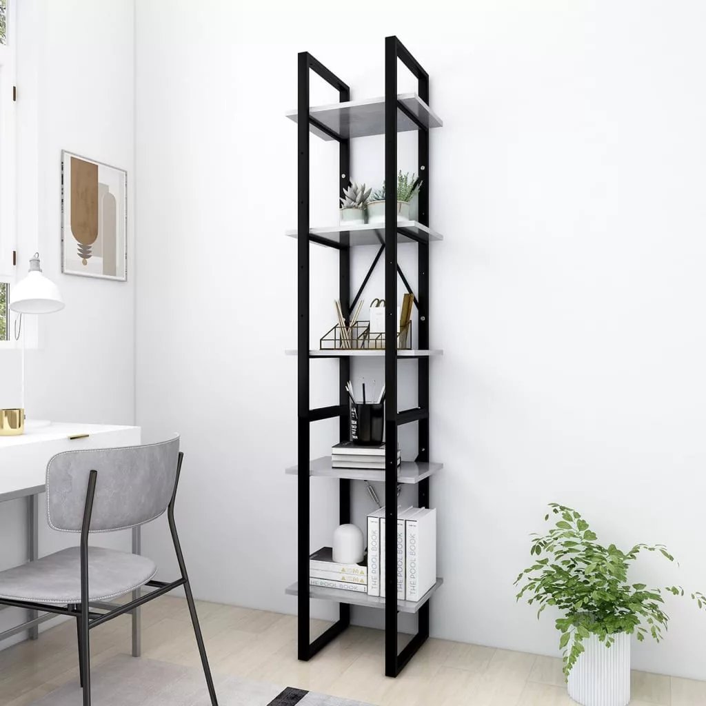 5 szintes betonszürke szerelt fa könyvszekrény 40 x 30 x 175 cm