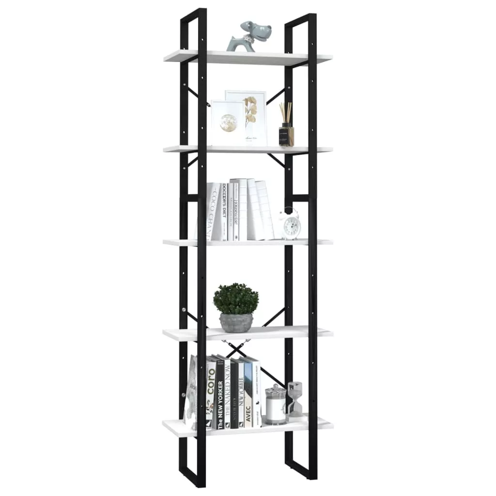 ötszintes fehér fenyőfa könyvszekrény 60 x 30 x 175 cm