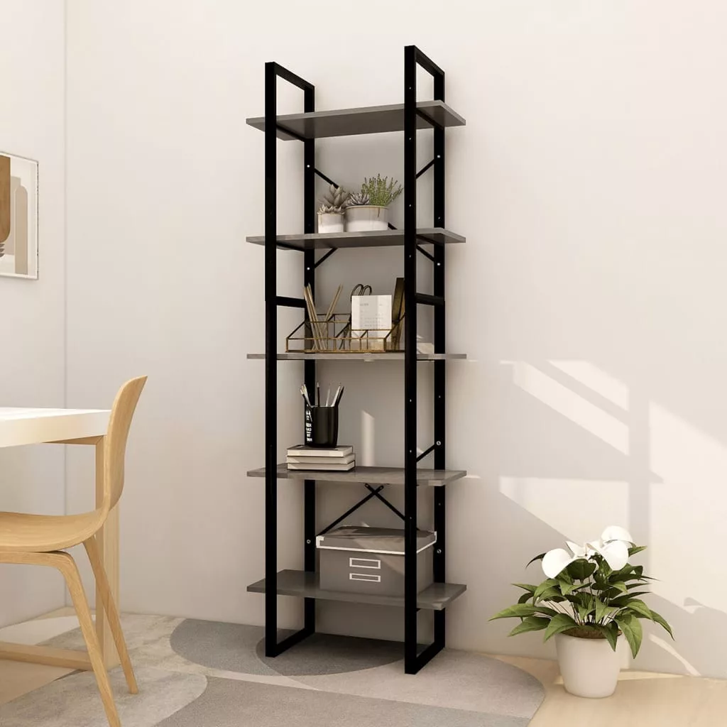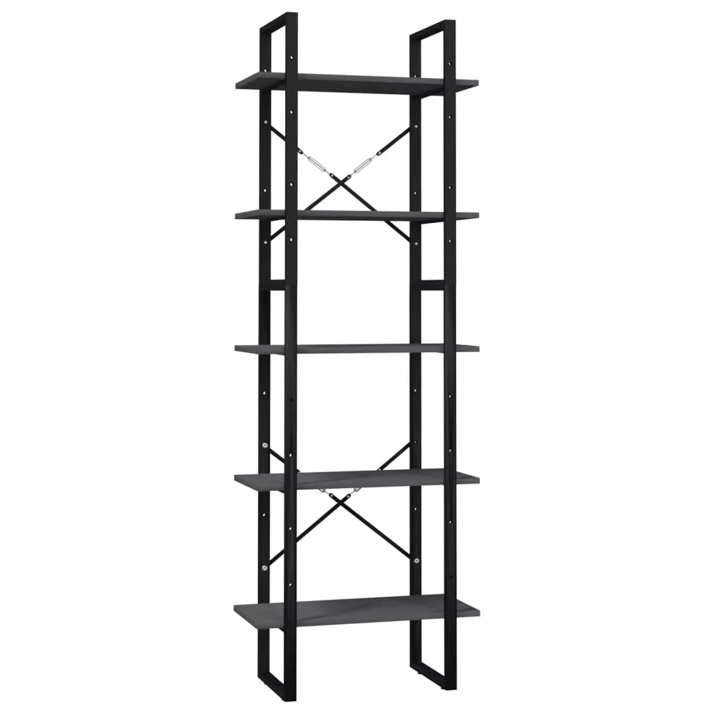 ötszintes szürke fenyőfa könyvszekrény 60 x 30 x 175 cm