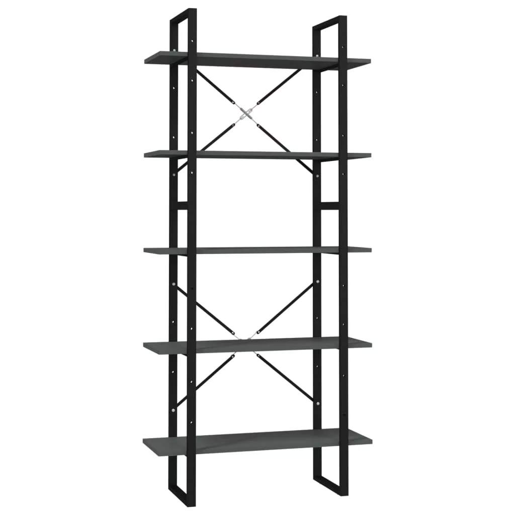 5 szintes szürke szerelt fa könyvszekrény 80 x 30 x 175 cm