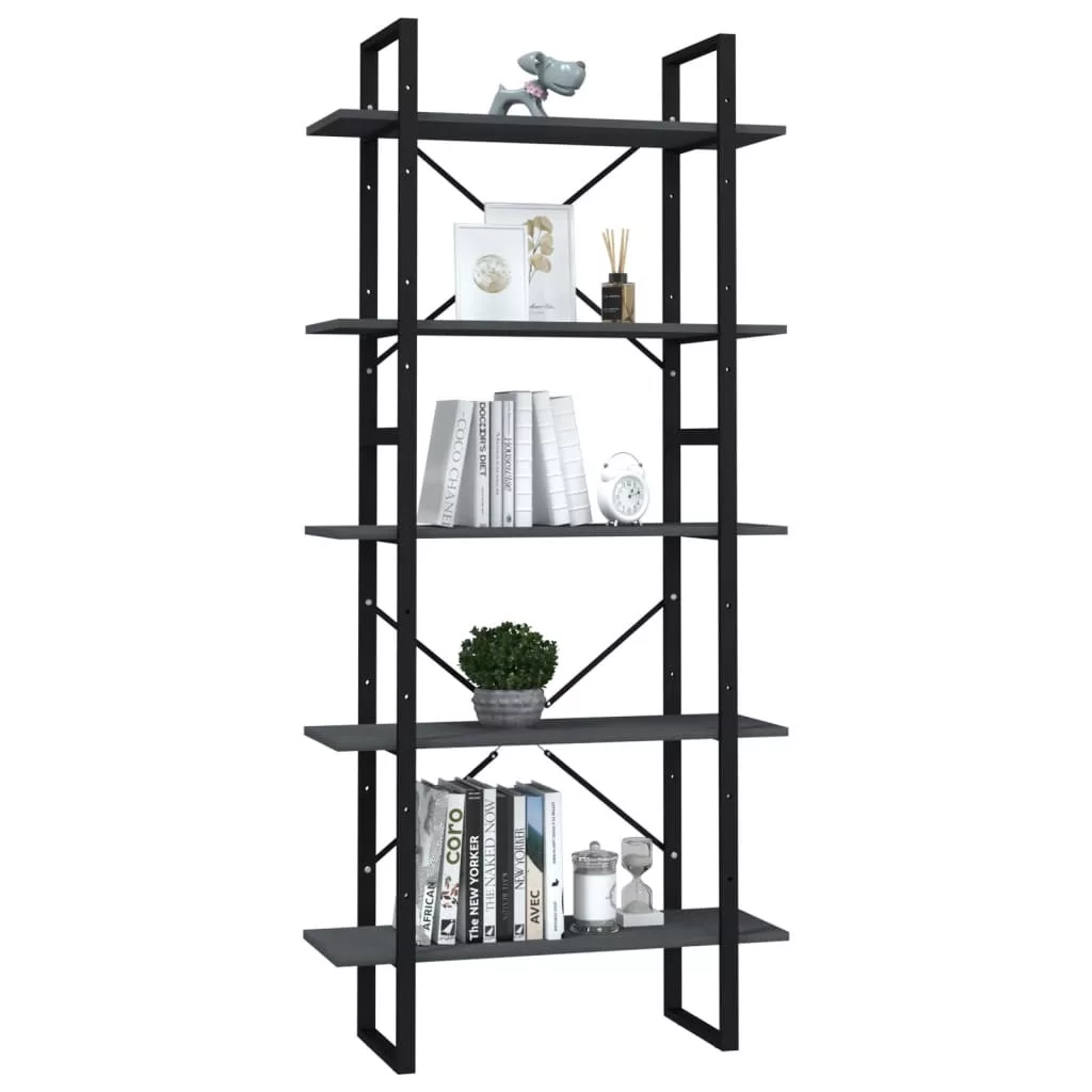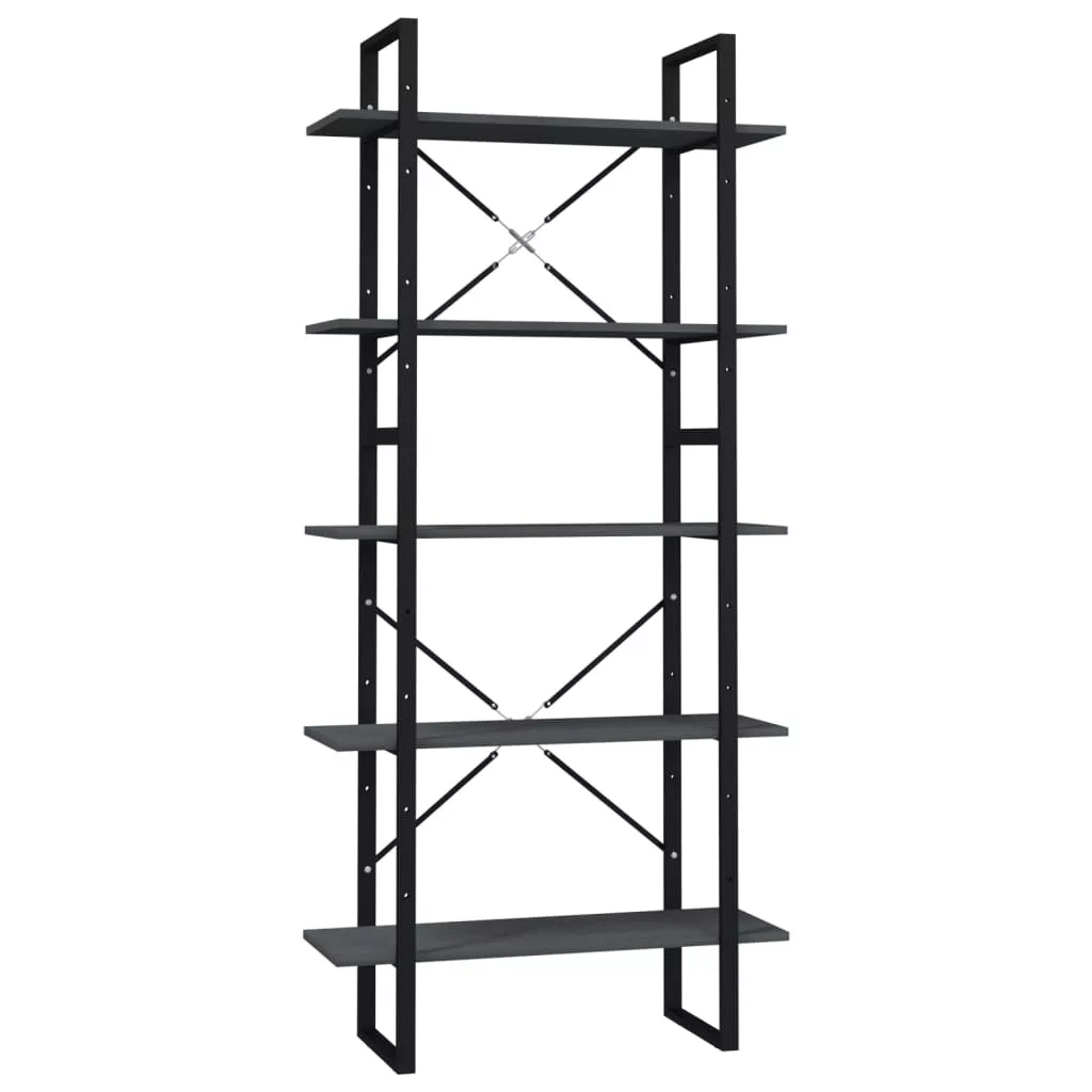 ötszintes szürke fenyőfa könyvszekrény 80 x 30 x 175 cm