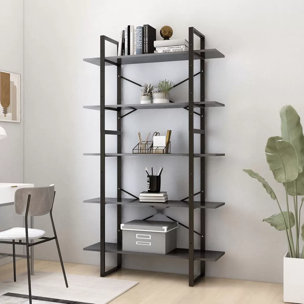 5 szintes szürke szerelt fa könyvszekrény 100 x 30 x 175 cm