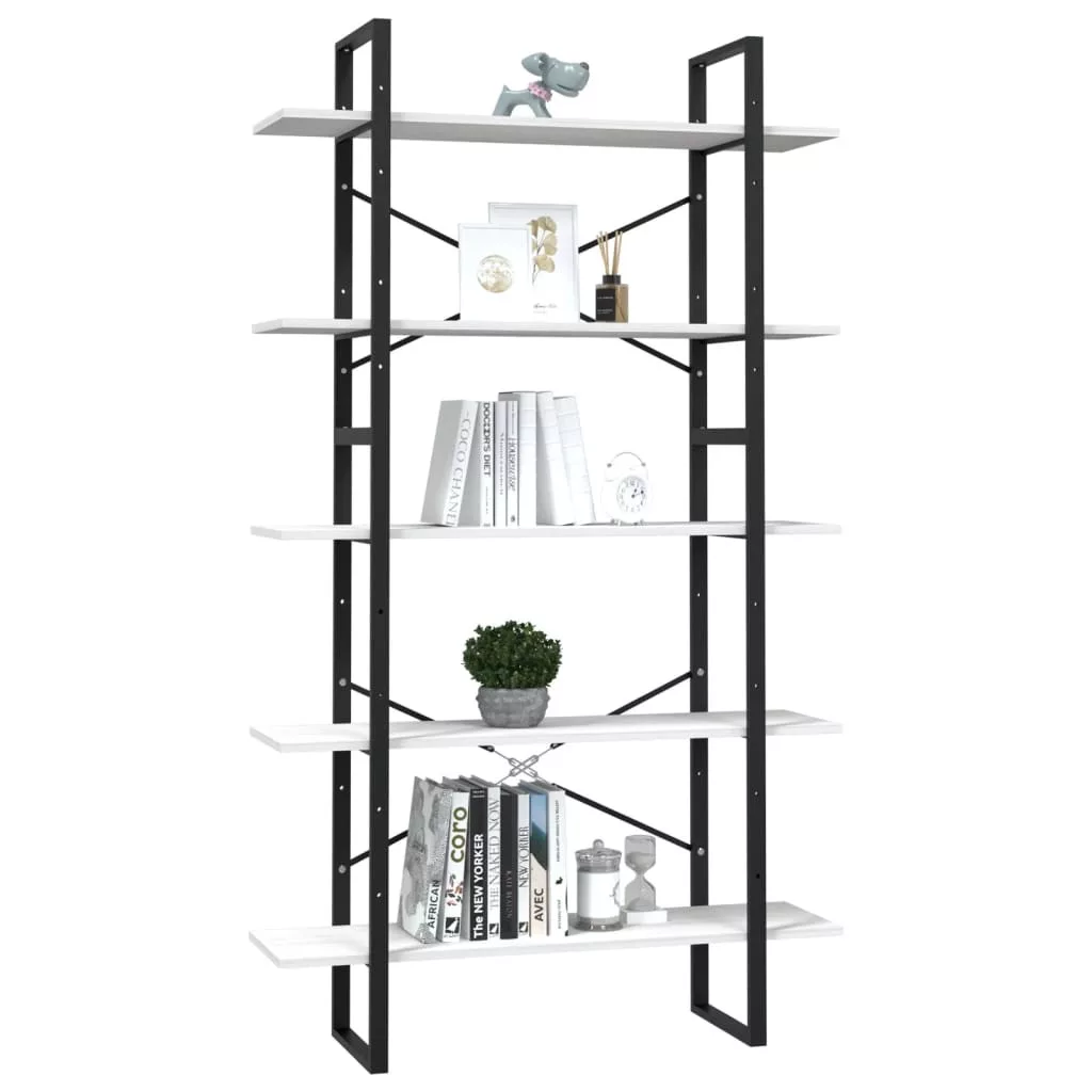 ötszintes fehér fenyőfa könyvszekrény 100 x 30 x 175 cm