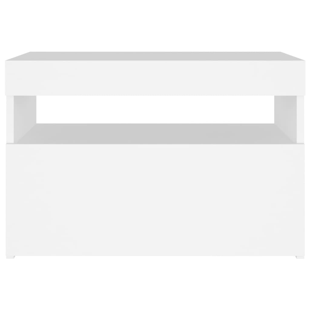 fehér éjjeliszekrény LED-lámpákkal 60x35x40 cm szerelt fa