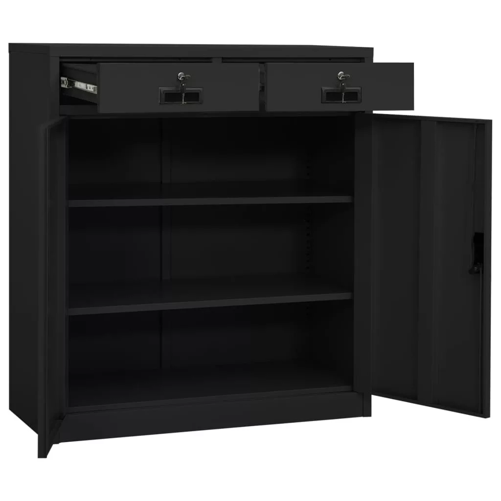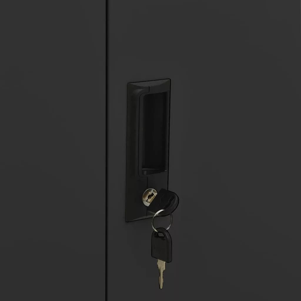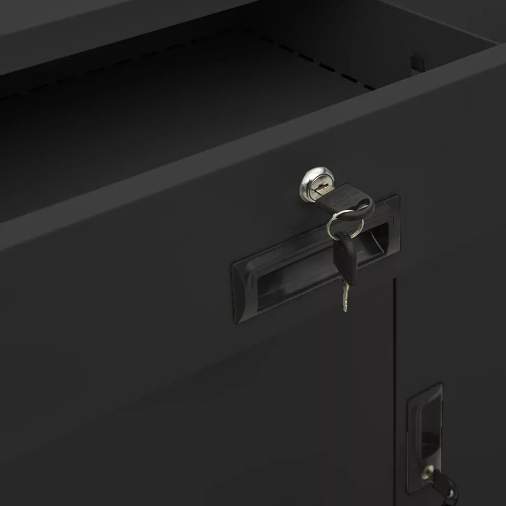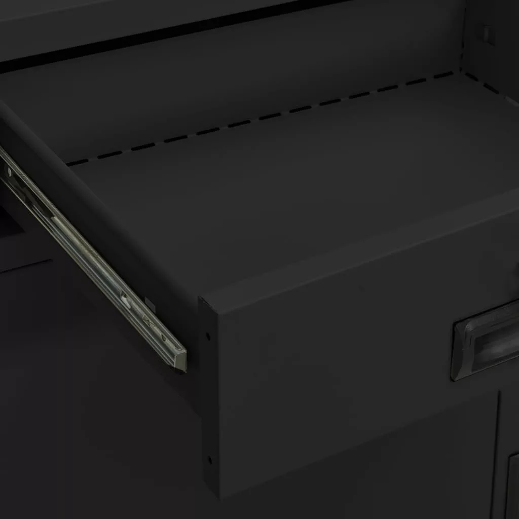 antracitszürke acél irodai szekrény ültetőládával 90x40x125 cm