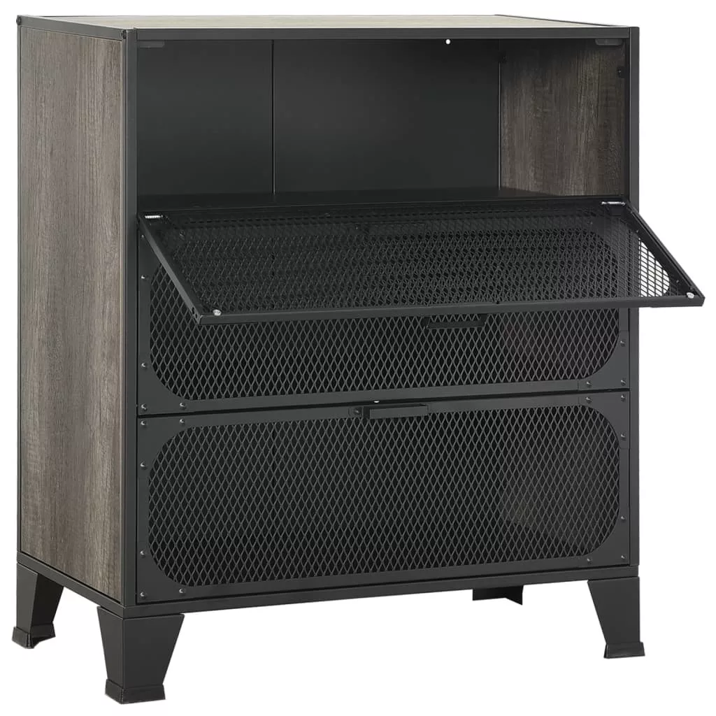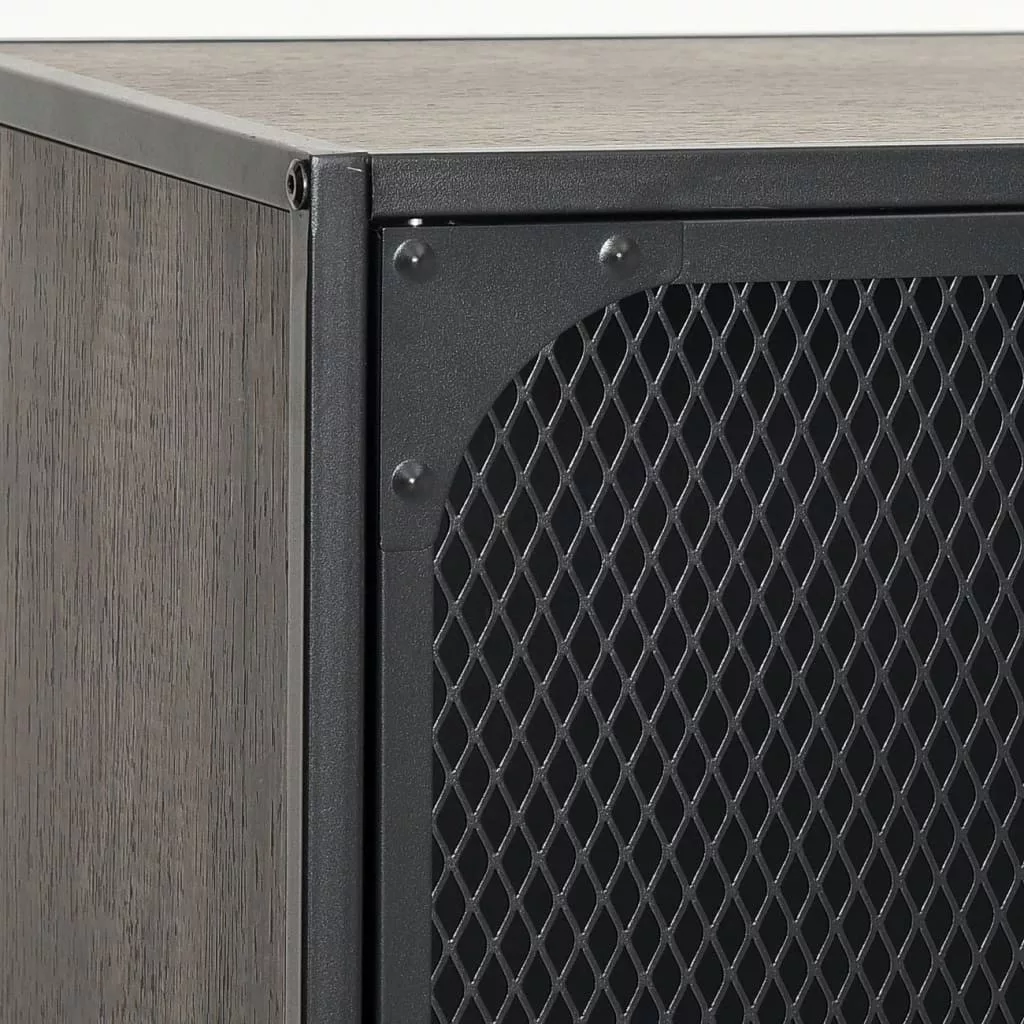 Ezek a tárolószekrények tisztán és rendben tartják lakását! Ez a tárolószekrény fémből és MDF-ből készült, így igazán erős szerkezetű és stabil. A szekrényben található 2 polc bőséges helyet biztosít DVD-i, multimédiás készülékei, könyvei és alapvető holmijai kézközelben történő rendezett tárolásához. A fémelemeknek és a rácsos ajtóknak köszönhetően ez a szekrény ipari hangulatot csempész nappalijába vagy hálószobájába. Ráadásul nedves ruhával könnyen tisztítható.