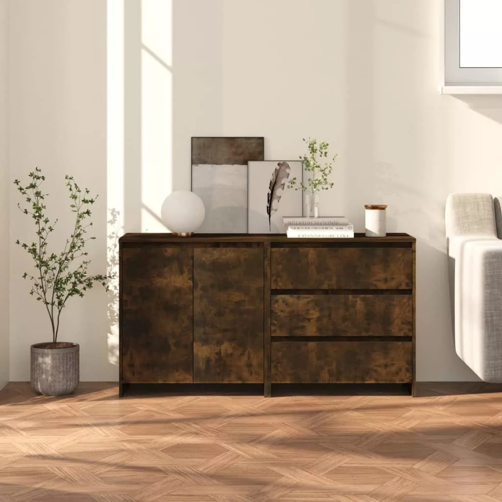 2 részes füstös tölgy színű szerelt fa tálalószekrény