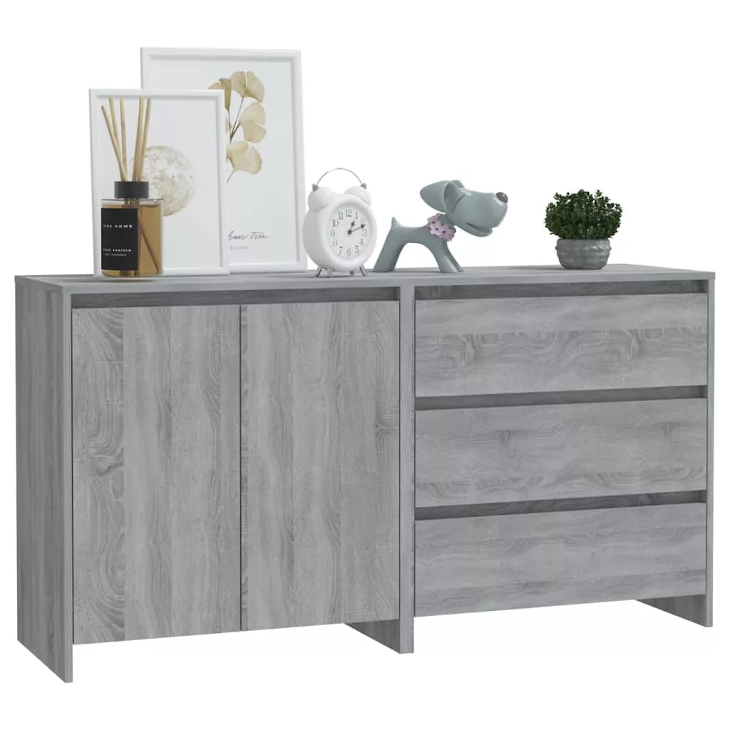 2 részes szürke sonoma színű szerelt fa tálalószekrény