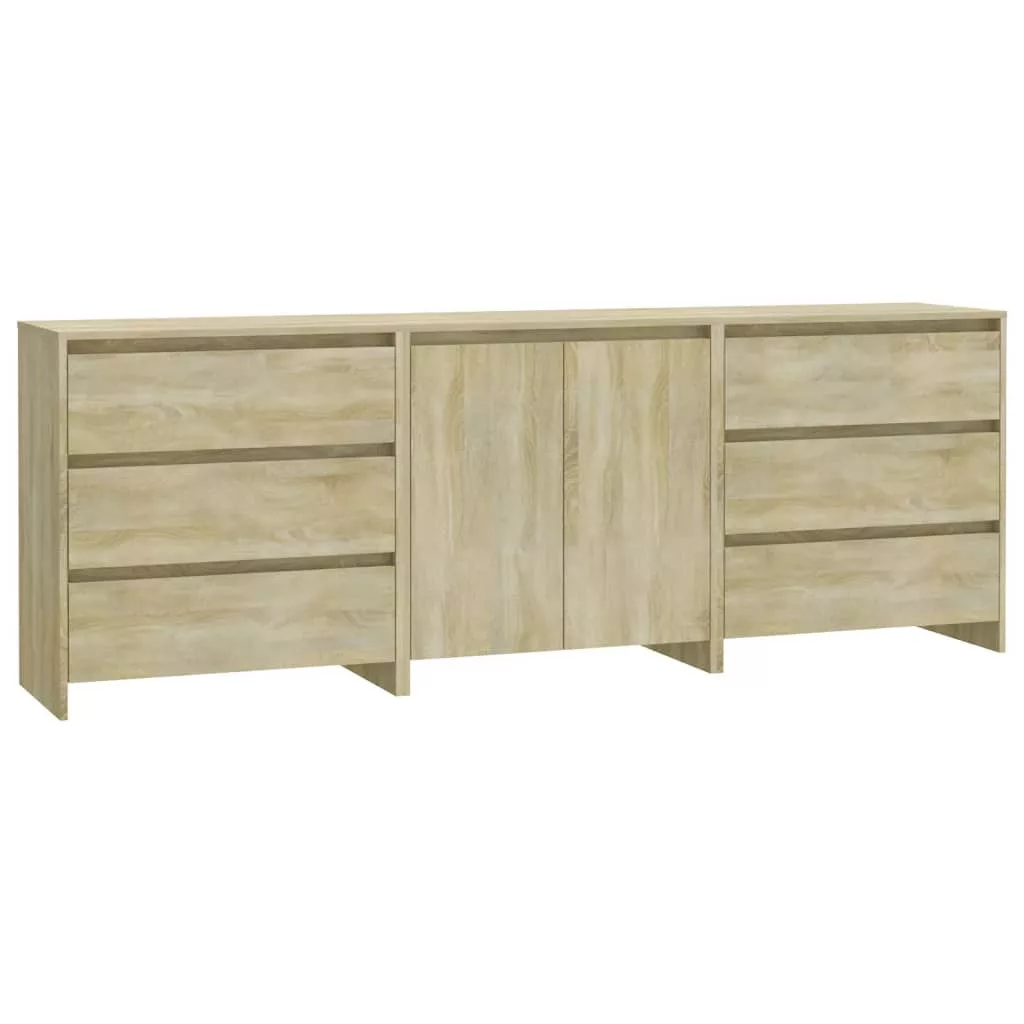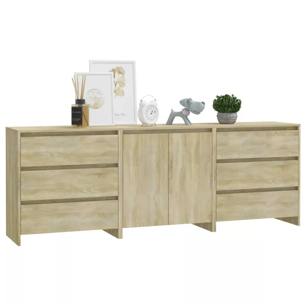 3 részes sonoma tölgy színű szerelt fa tálalószekrény