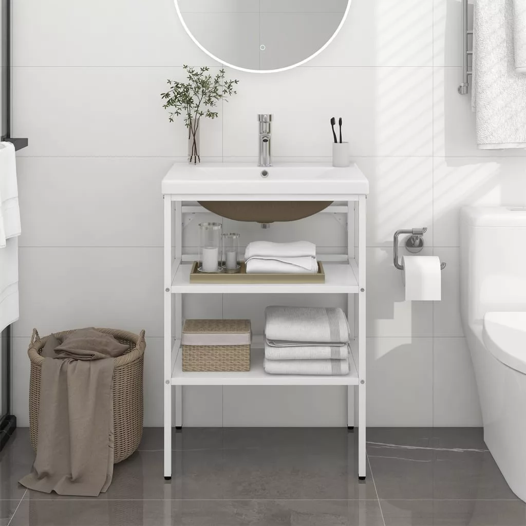 fehér vas fürdőszobai mosdókagylóváz beépített mosdóval
