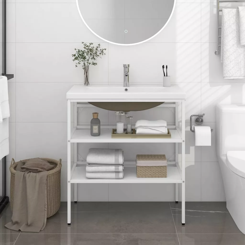 fehér vas fürdőszobai mosdókagylóváz beépített mosdóval