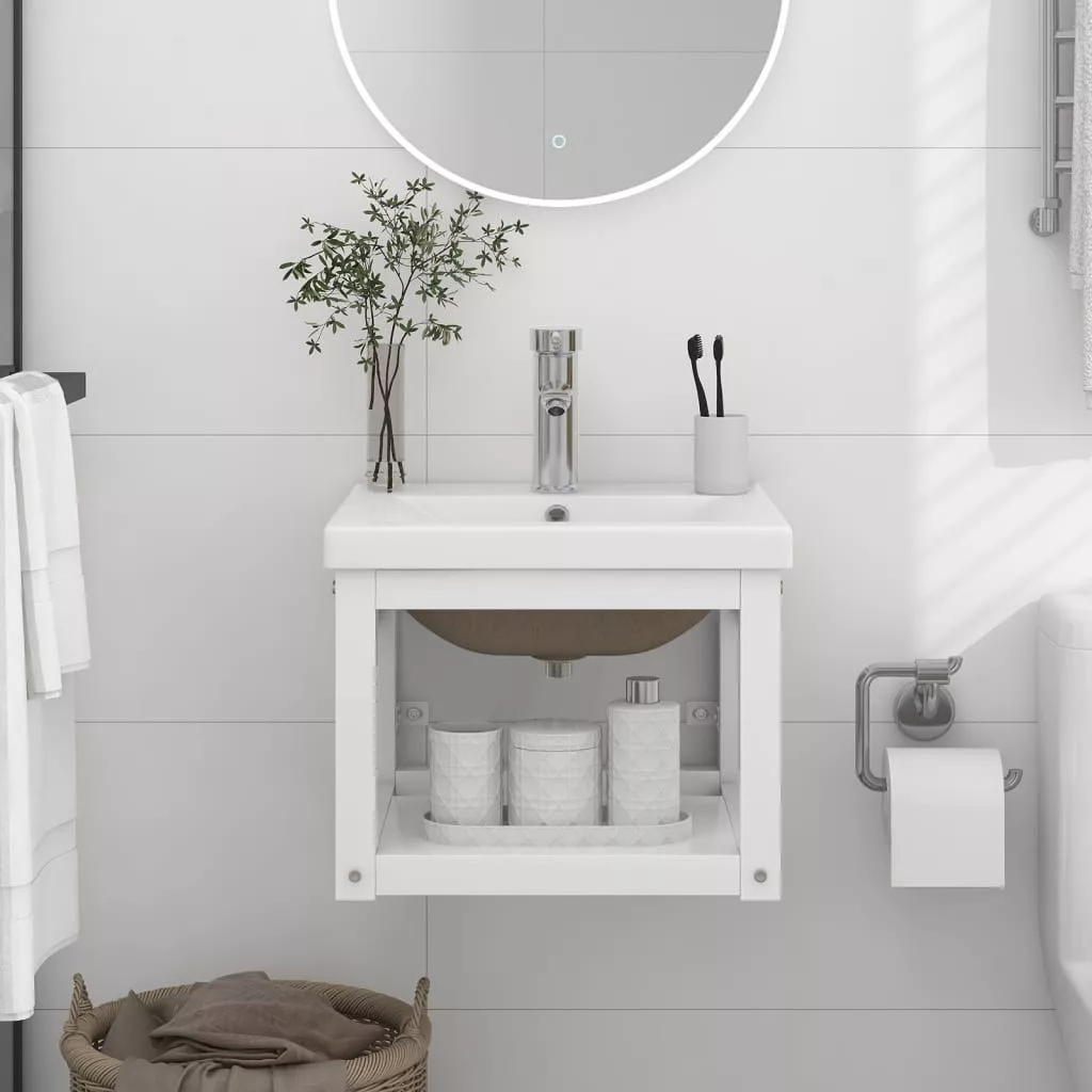 fehér vas fürdőszobai mosdókagylóváz beépített mosdóval