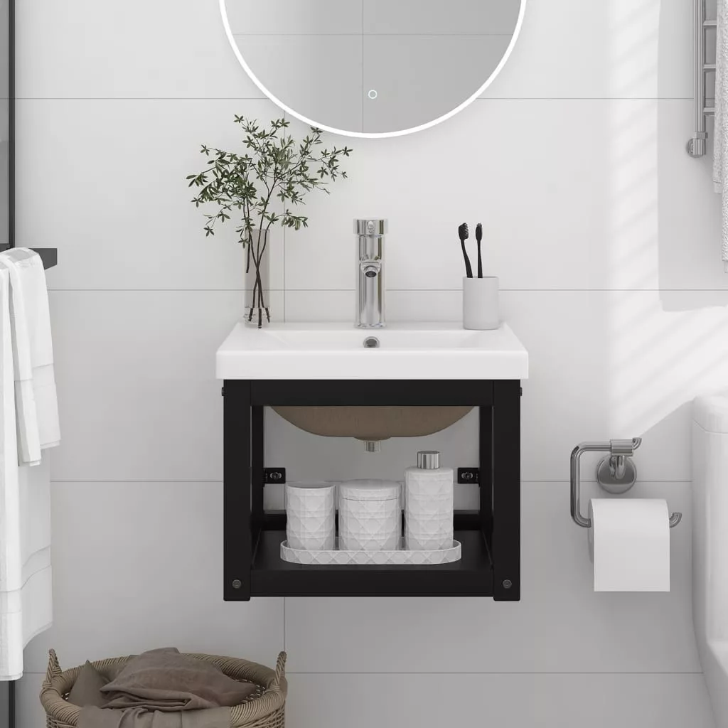 fekete vas fürdőszobai mosdókagylóváz beépített mosdóval