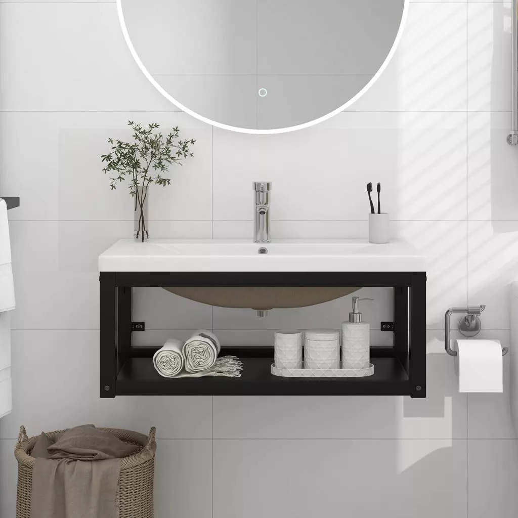 fekete vas fürdőszobai mosdókagylóváz beépített mosdóval