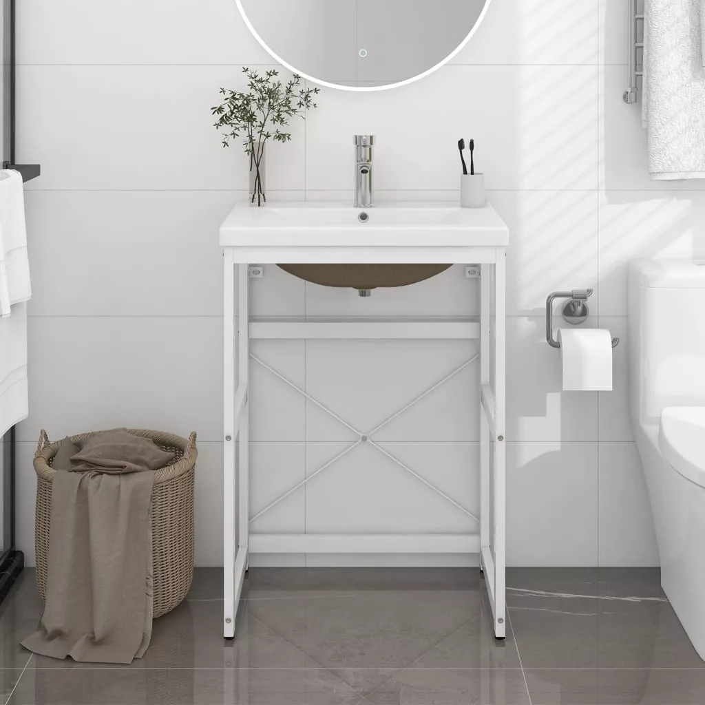 fehér vas fürdőszobai mosdókagylóváz beépített mosdóval