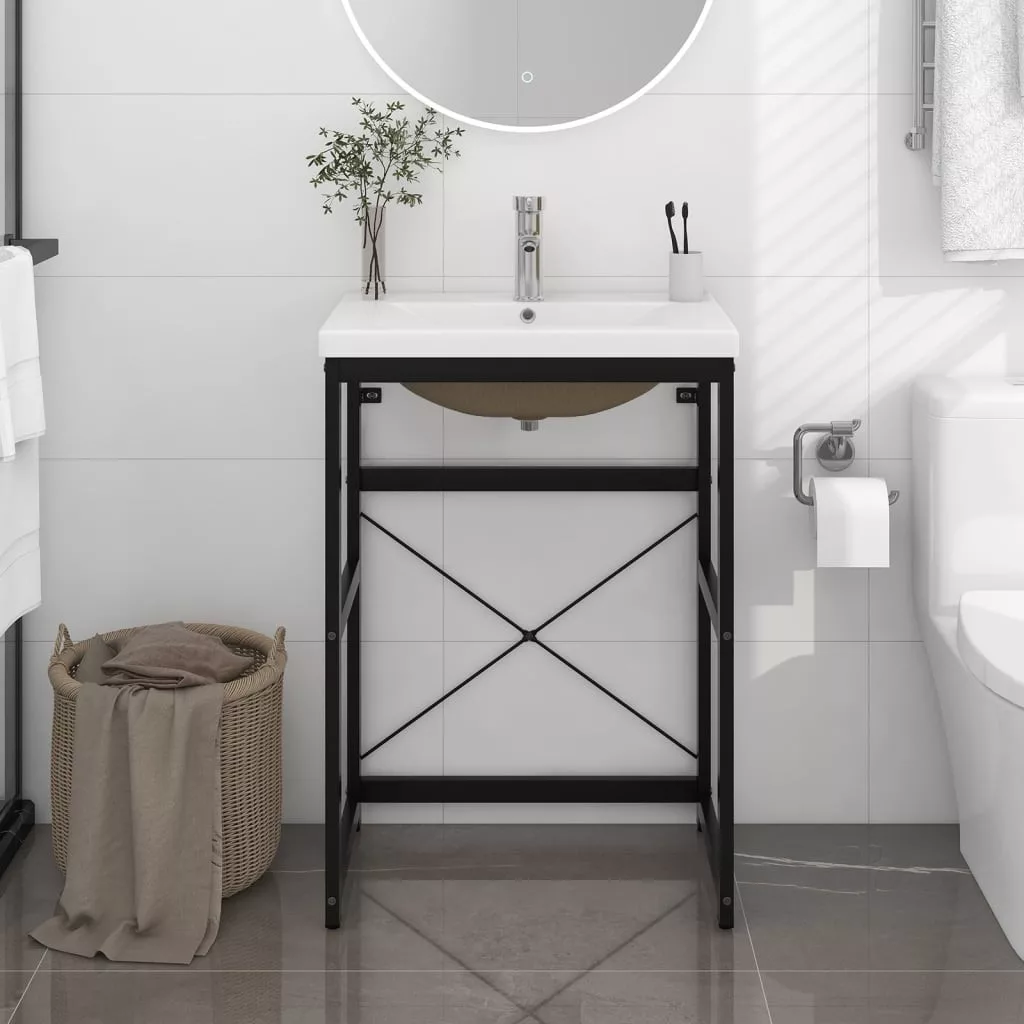 fekete vas fürdőszobai mosdókagylóváz beépített mosdóval