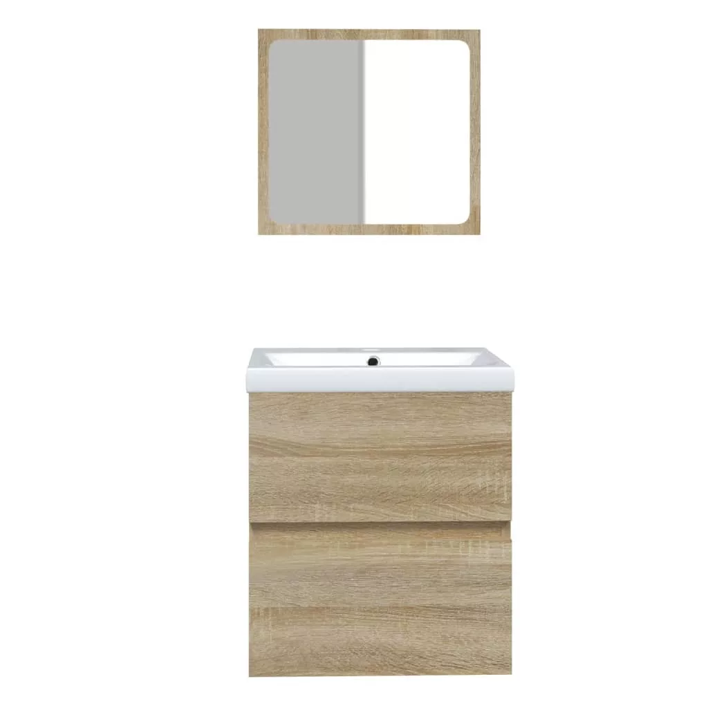 sonoma tölgy fürdőszobai mosdószekrény mosdóval és tükörrel