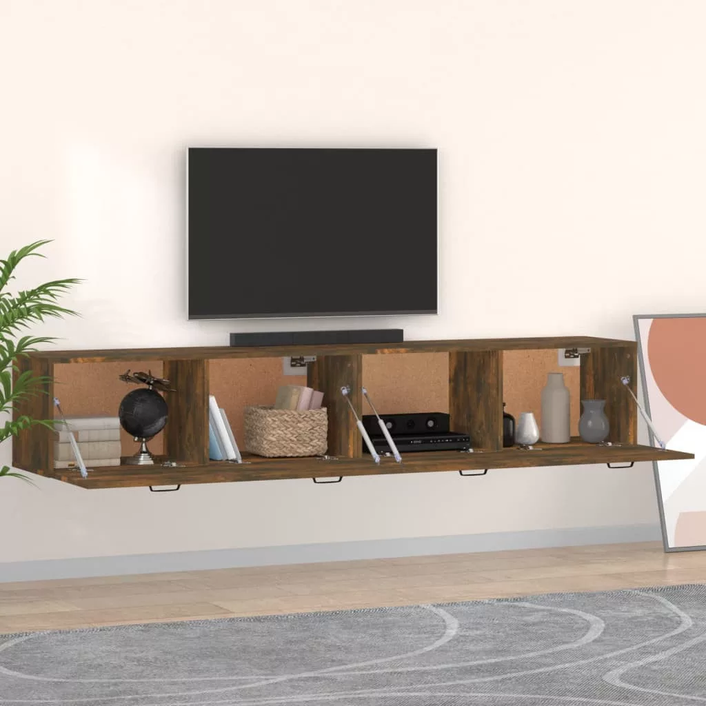 2 db füstös tölgy színű szerelt fa faliszekrény 100x36,5x35 cm