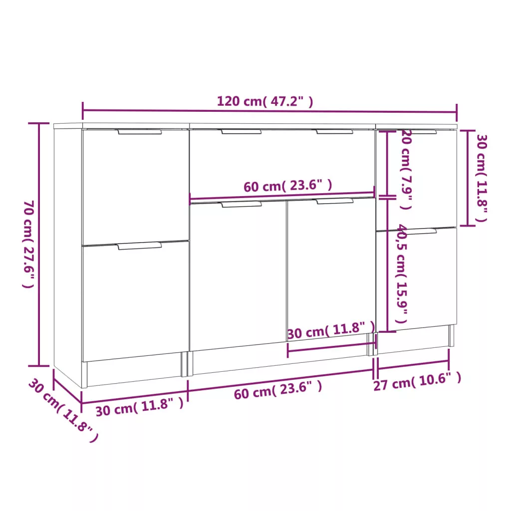 • Mérete (fiókos tálalószekrény): 60 x 30 x 70 cm (Szé x Mé x Ma)
