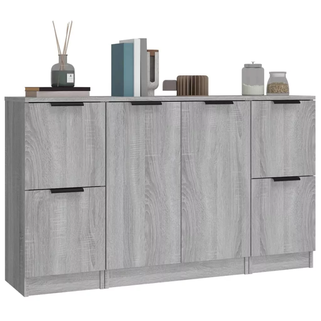 3 db szürke sonoma színű szerelt fa tálalószekrény