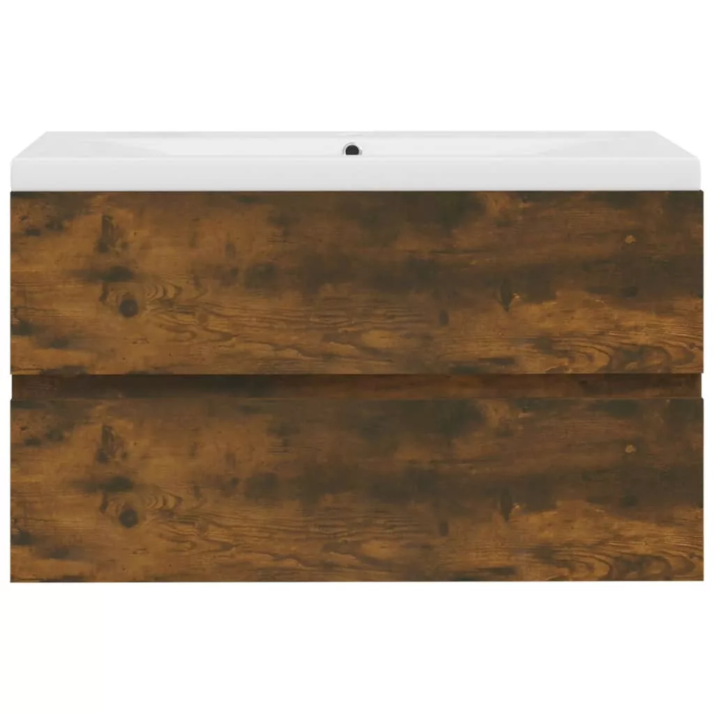 füstös tölgy színű szerelt fa mosdószekrény beépített mosdóval