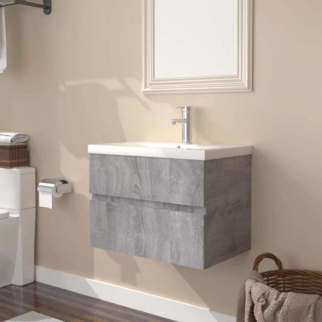 szürke sonoma fatermék mosdószekrény beépített mosdóval
