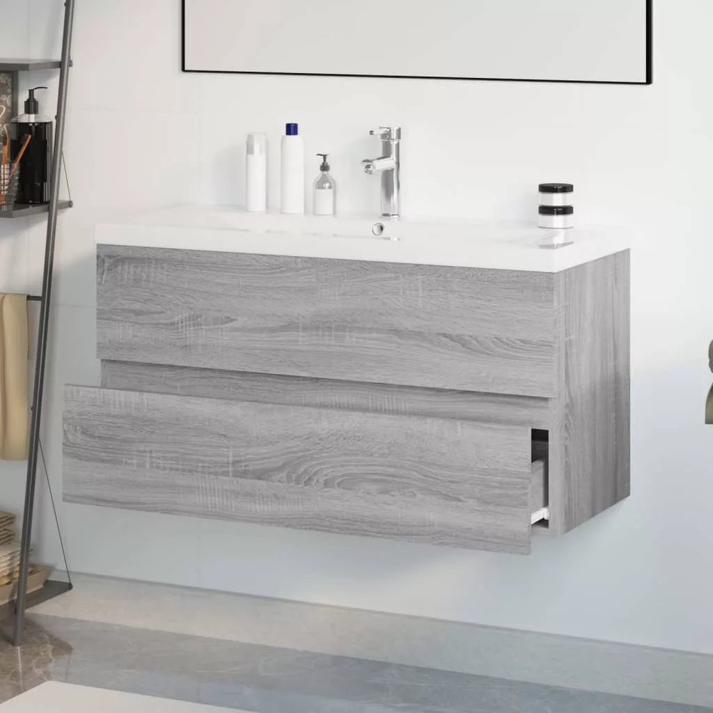 szürke sonoma fatermék mosdószekrény beépített mosdóval