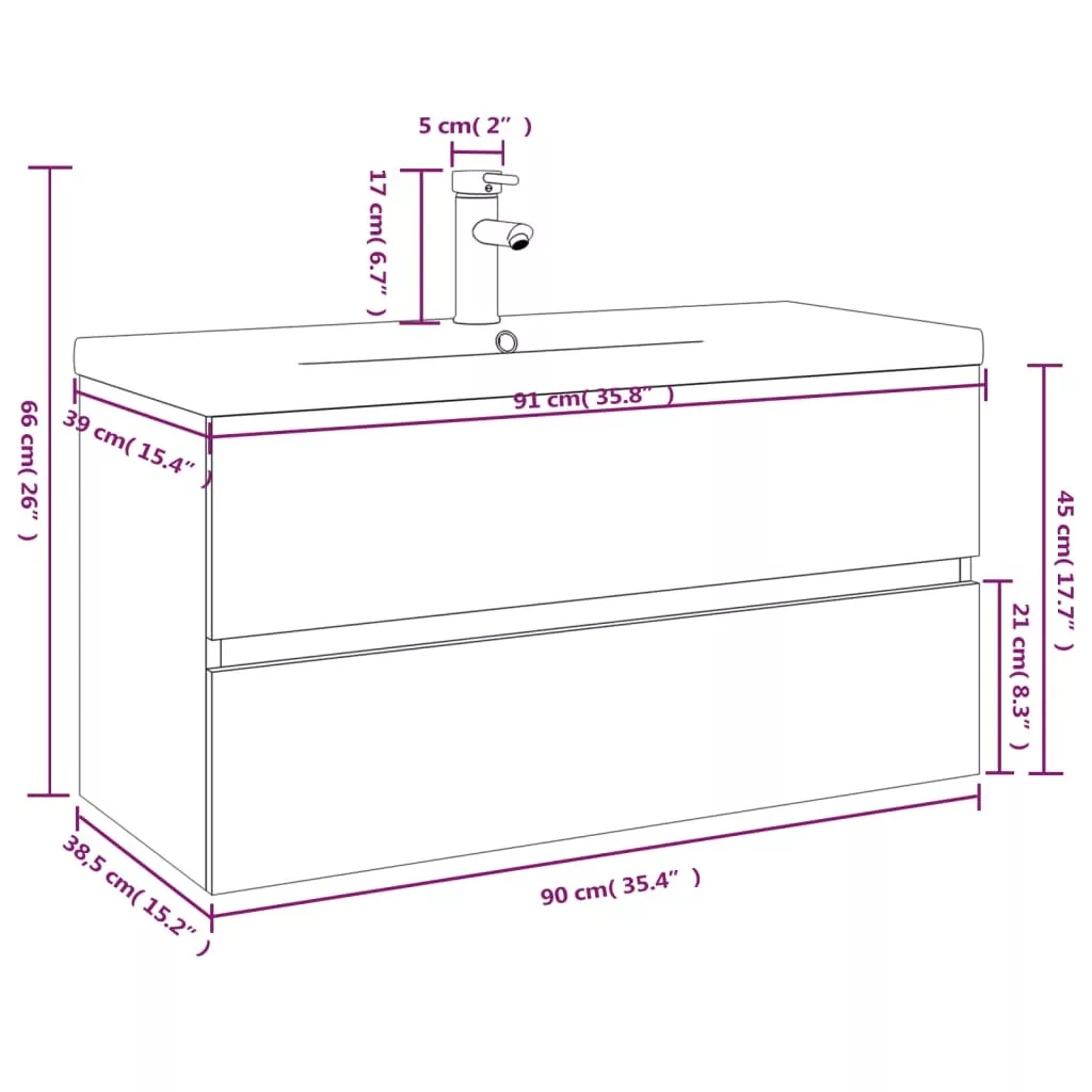Ez a tágas tárolórésszel rendelkező, stílusos mosdószekrény beépített mosdóval fürdőszobája nagyszerű kiegészítője lesz, rendezett és lenyűgöző megjelenést kölcsönözve neki! Masszív anyag: A mosdó alatti szekrény szerelt fából készült, ami kivételes minőségű, sima felületű, szilárd, stabil, és ellenáll a nedvességnek.Bőséges tárolóhely: A fürdőszobai mosdóegység egy fiókkal rendelkezik, amely bőséges helyet biztosít a fürdőszobában lévő holmik tárolására.Praktikus kialakítás: A fürdőszobaszekrény teteje ideális a mosdókagyló elhelyezésére.Falra szerelhető: A fürdőszobaszekrény falra szerelhető, így extra tárolóhelyet biztosít. Ezáltal maximalizálhatja az alapterületet, és tisztán tarthatja a környezetét.Túlfolyófunkció: Túlfolyóval is rendelkezik, hogy kifolyjon a víz, ha a mosdó túlságosan megtelik. Megjegyzés:A falon belüli csavar(ok) és dugó(k) nem alaptartozékok. Keressen és használjon a falának megfelelő csavar(oka)t és dugó(ka)t. Ha bizonytalan, kérje szakember tanácsát. Gondosan olvassa el és kövesse a használati utasítás minden lépését.Figyelem: a szállítás a csapot és a lefolyót nem tartalmazza.Az egyszerű összeszerelés érdekében minden termékhez mellékelünk összeszerelési útmutatót.A csaptelep hideg-meleg vizes, és ha meleg vízre van szüksége, vízmelegítőt kell csatlakoztatni hozzá. A gyermekeket felügyelni kell, hogy ne játsszanak a készülékkel. Tartsd távol a gyermekeket a szerelési területtől. Figyelem: Olvasd el alaposan az utasításokat a használat előtt, és tartsd meg későbbi hivatkozás céljából.