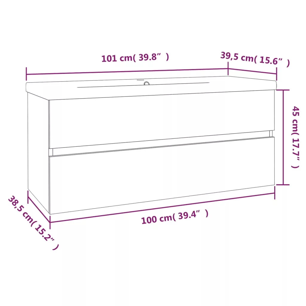 Ez a tágas tárolórésszel rendelkező, stílusos mosdószekrény beépített mosdóval fürdőszobája nagyszerű kiegészítője lesz, rendezett és lenyűgöző megjelenést kölcsönözve neki! Masszív anyag: A mosdó alatti szekrény szerelt fából készült, ami kivételes minőségű, sima felületű, szilárd, stabil, és ellenáll a nedvességnek.Bőséges tárolóhely: A fürdőszobai mosdóegység egy fiókkal rendelkezik, amely bőséges helyet biztosít a fürdőszobában lévő holmik tárolására.Praktikus kialakítás: A fürdőszobaszekrény teteje ideális a mosdókagyló elhelyezésére.Falra szerelhető: A fürdőszobaszekrény falra szerelhető, így extra tárolóhelyet biztosít. Ezáltal maximalizálhatja az alapterületet, és tisztán tarthatja a környezetét.Túlfolyófunkció: Túlfolyóval is rendelkezik, hogy kifolyjon a víz, ha a mosdó túlságosan megtelik. Megjegyzés:A falon belüli csavar(ok) és dugó(k) nem alaptartozékok. Keressen és használjon a falának megfelelő csavar(oka)t és dugó(ka)t. Ha bizonytalan, kérje szakember tanácsát. Gondosan olvassa el és kövesse a használati utasítás minden lépését.Figyelem: a szállítás a csapot és a lefolyót nem tartalmazza.Az egyszerű összeszerelés érdekében minden termékhez mellékelünk összeszerelési útmutatót. A gyermekeket felügyelni kell, hogy ne játszhassanak az eszközzel. Tartsd távol a gyermekeket a szerelési területtől. Figyelem: Olvasd el alaposan az utasításokat használat előtt, és tartsd meg későbbi hivatkozásra.