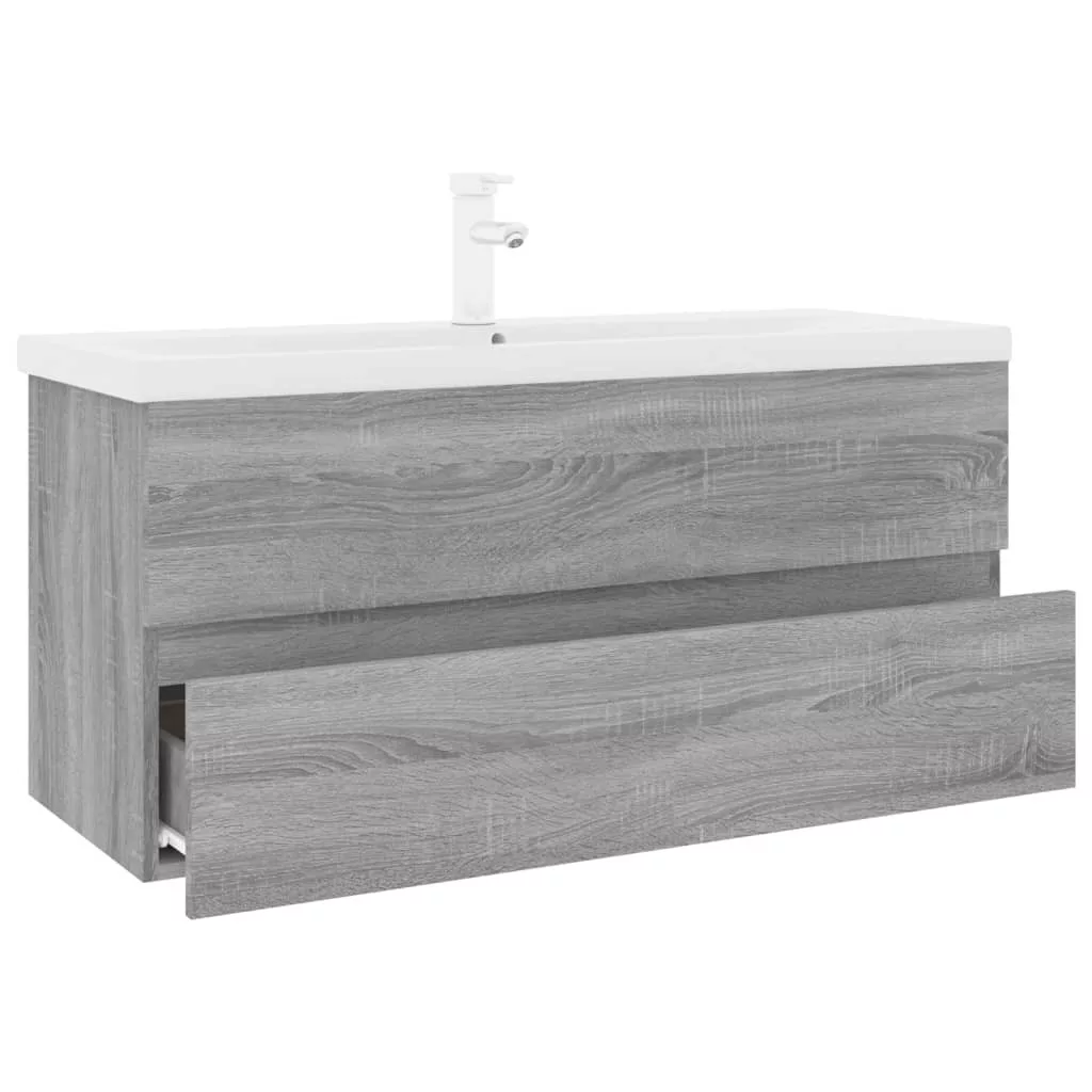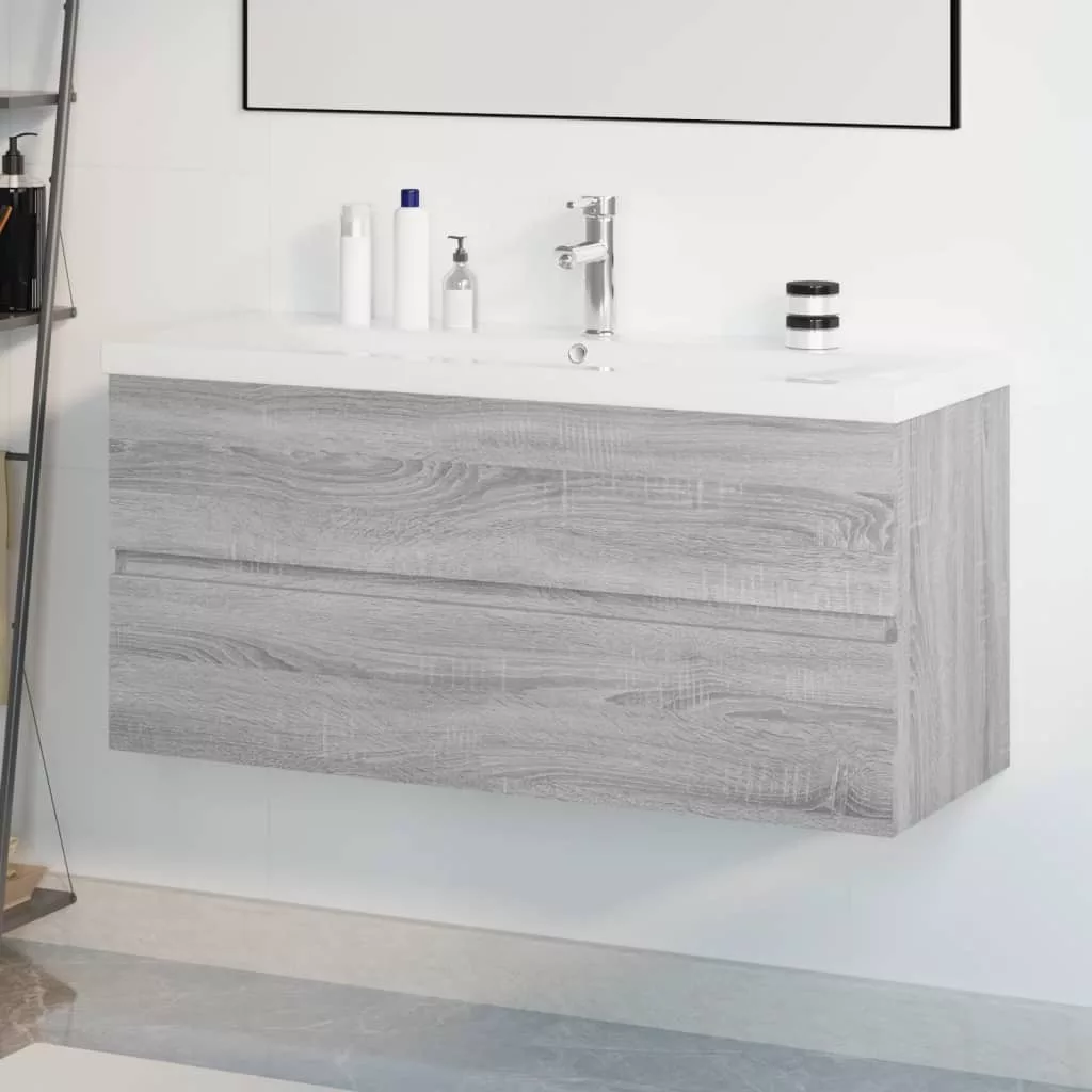 szürke sonoma fatermék mosdószekrény beépített mosdóval