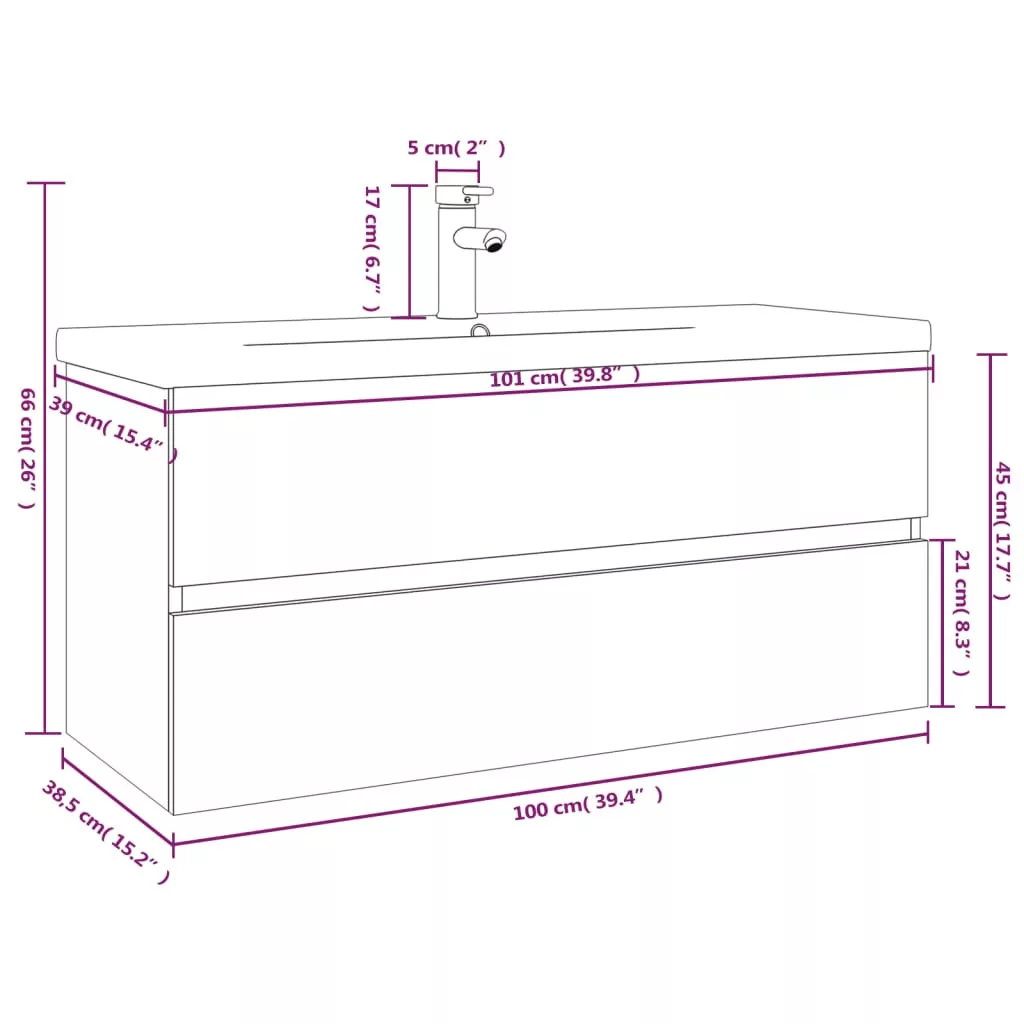 Ez a tágas tárolórésszel rendelkező, stílusos mosdószekrény beépített mosdóval fürdőszobája nagyszerű kiegészítője lesz, rendezett és lenyűgöző megjelenést kölcsönözve neki! Masszív anyag: A mosdó alatti szekrény szerelt fából készült, ami kivételes minőségű, sima felületű, szilárd, stabil, és ellenáll a nedvességnek.Bőséges tárolóhely: A fürdőszobai mosdóegység egy fiókkal rendelkezik, amely bőséges helyet biztosít a fürdőszobában lévő holmik tárolására.Praktikus kialakítás: A fürdőszobaszekrény teteje ideális a mosdókagyló elhelyezésére.Falra szerelhető: A fürdőszobaszekrény falra szerelhető, így extra tárolóhelyet biztosít. Ezáltal maximalizálhatja az alapterületet, és tisztán tarthatja a környezetét.Túlfolyófunkció: Túlfolyóval is rendelkezik, hogy kifolyjon a víz, ha a mosdó túlságosan megtelik. Megjegyzés:A falon belüli csavar(ok) és dugó(k) nem alaptartozékok. Keressen és használjon a falának megfelelő csavar(oka)t és dugó(ka)t. Ha bizonytalan, kérje szakember tanácsát. Gondosan olvassa el és kövesse a használati utasítás minden lépését.A csomag a csaptelepet és a túlfolyófunkcióval ellátott nyomógombos leeresztőszelepet tartalmazza.Az egyszerű összeszerelés érdekében minden termékhez mellékelünk összeszerelési útmutatót.A csaptelep hideg-meleg vizes, és ha meleg vízre van szüksége, vízmelegítőt kell csatlakoztatni hozzá. A gyermekeket felügyelni kell, hogy ne játszhassanak az eszközzel. Tartsd távol a gyermekeket a szerelési területtől. Figyelem: Olvasd el alaposan az utasításokat használat előtt, és tartsd meg későbbi hivatkozásra.