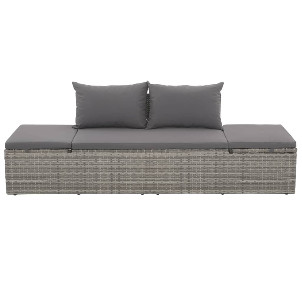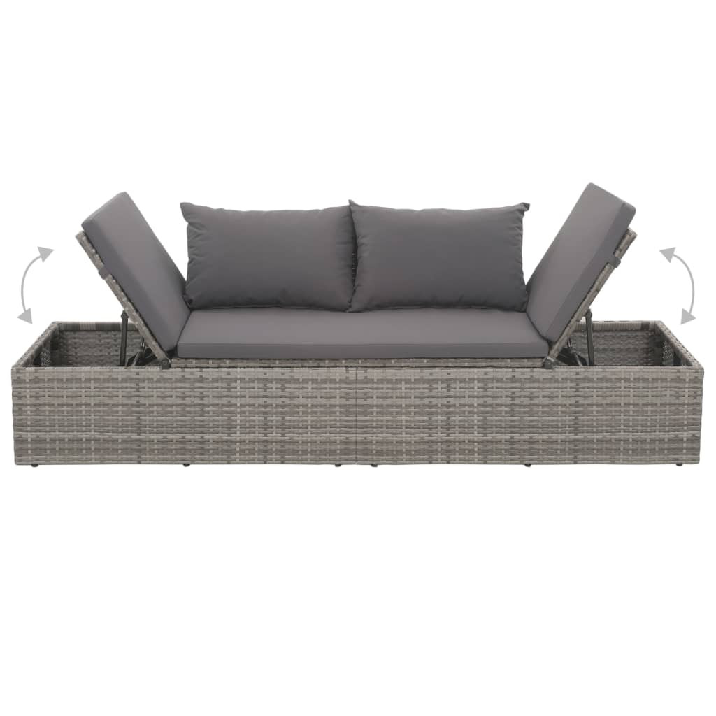 szürke polyrattan kültéri nyugágy hát- és ülőpárnákkal