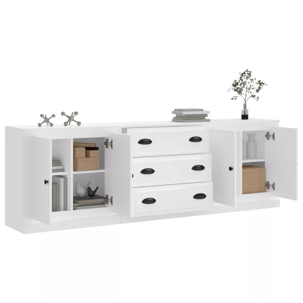 3 db fehér szerelt fa tálalószekrény