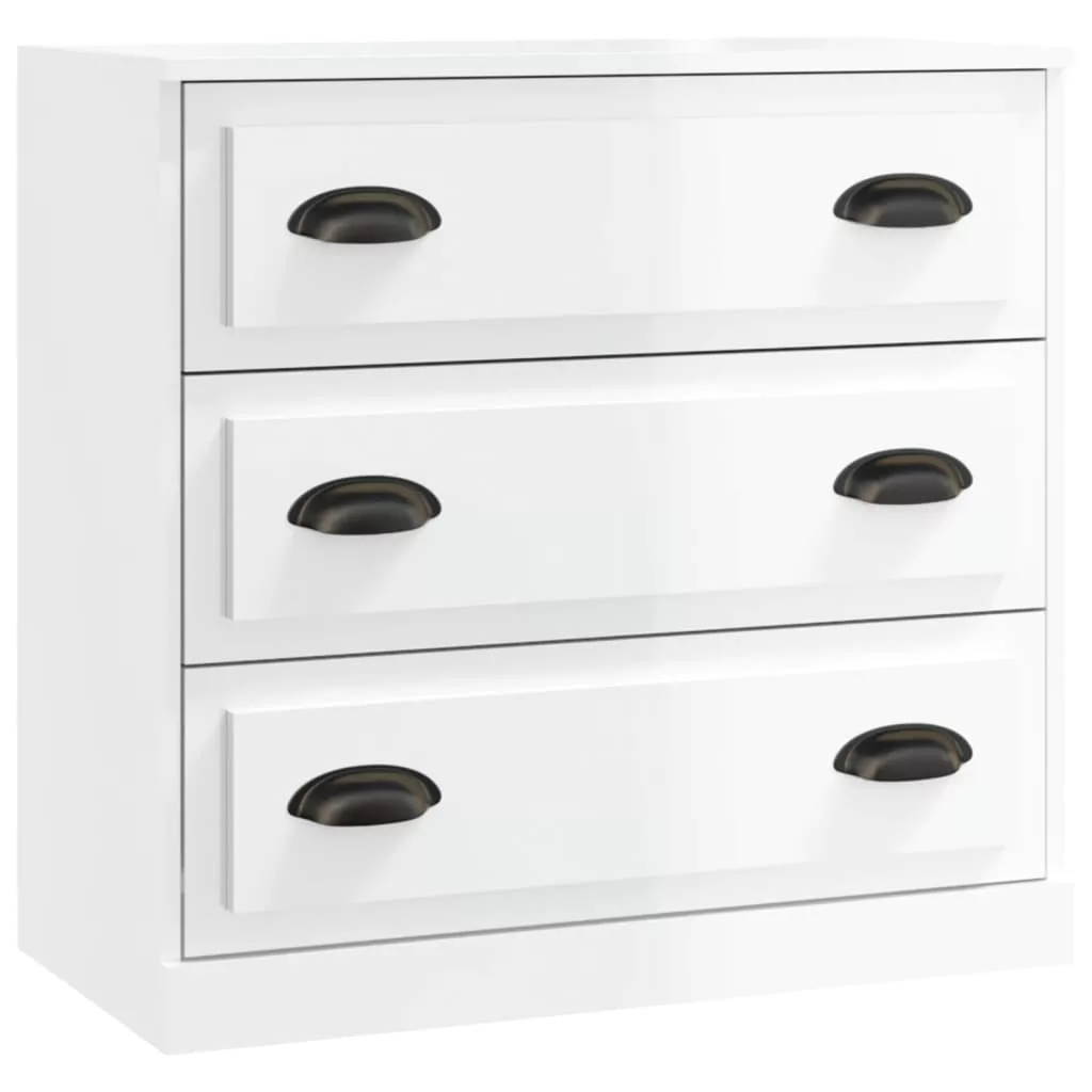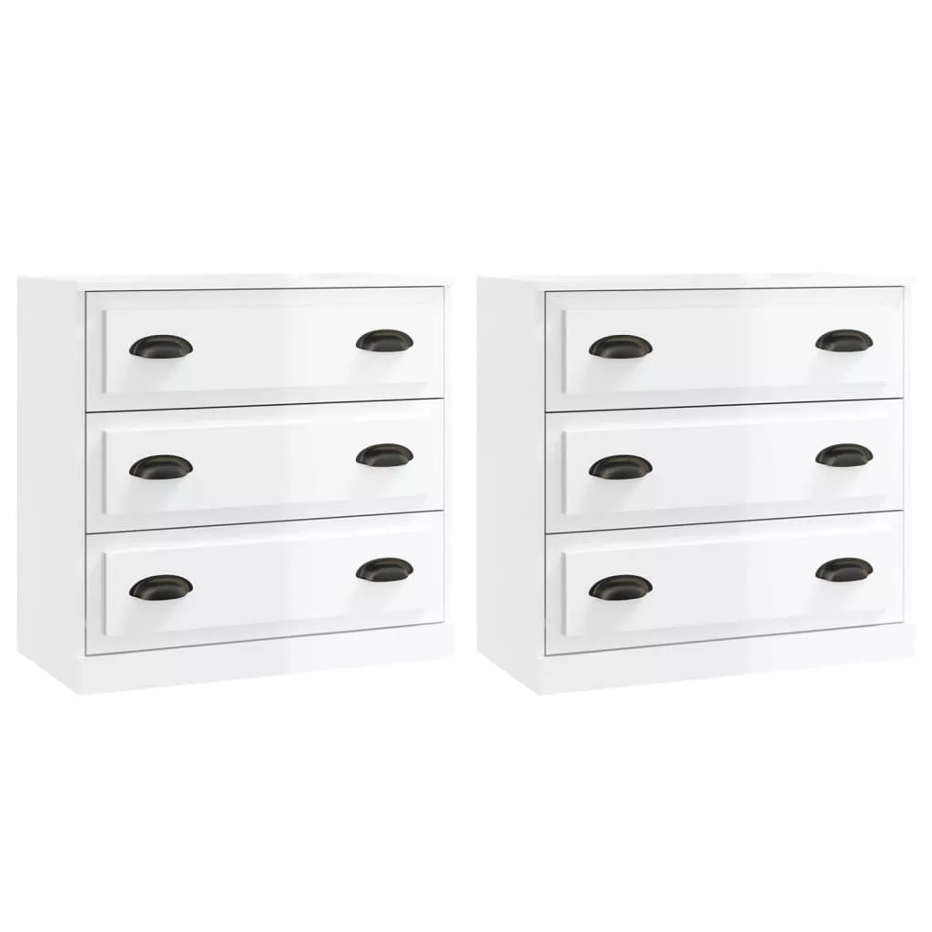 2 db magasfényű fehér szerelt fa tálalószekrény