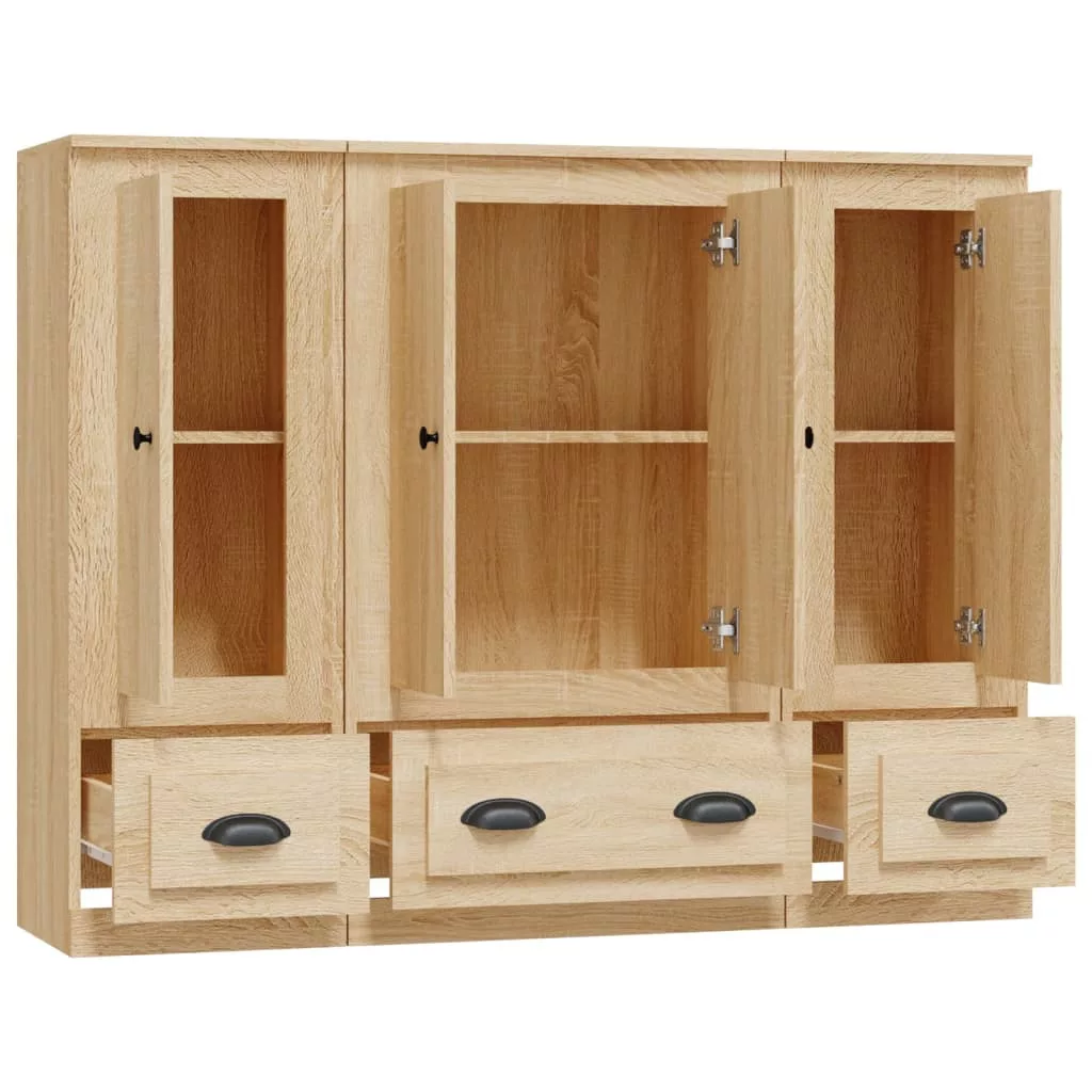 3 db sonoma tölgy színű szerelt fa magasszekrény