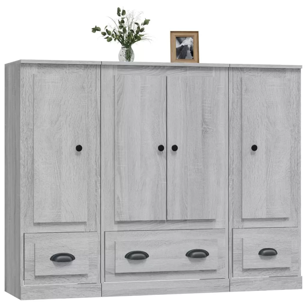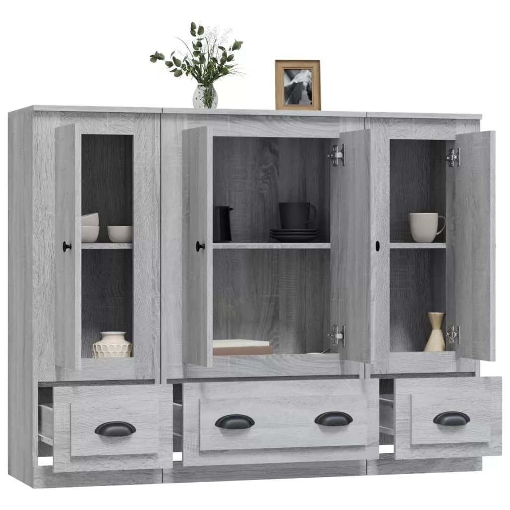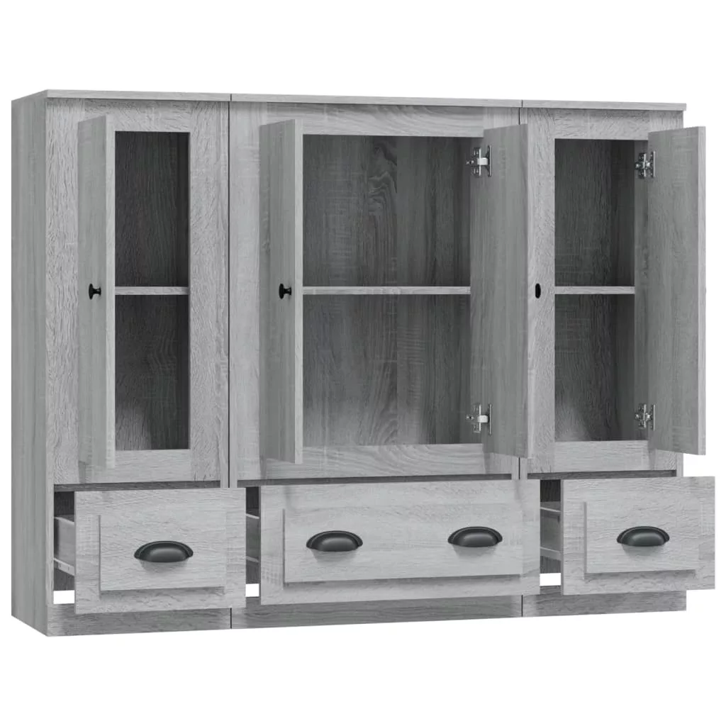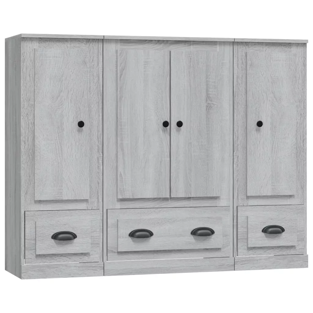 3 db szürke sonoma szerelt fa magasszekrény