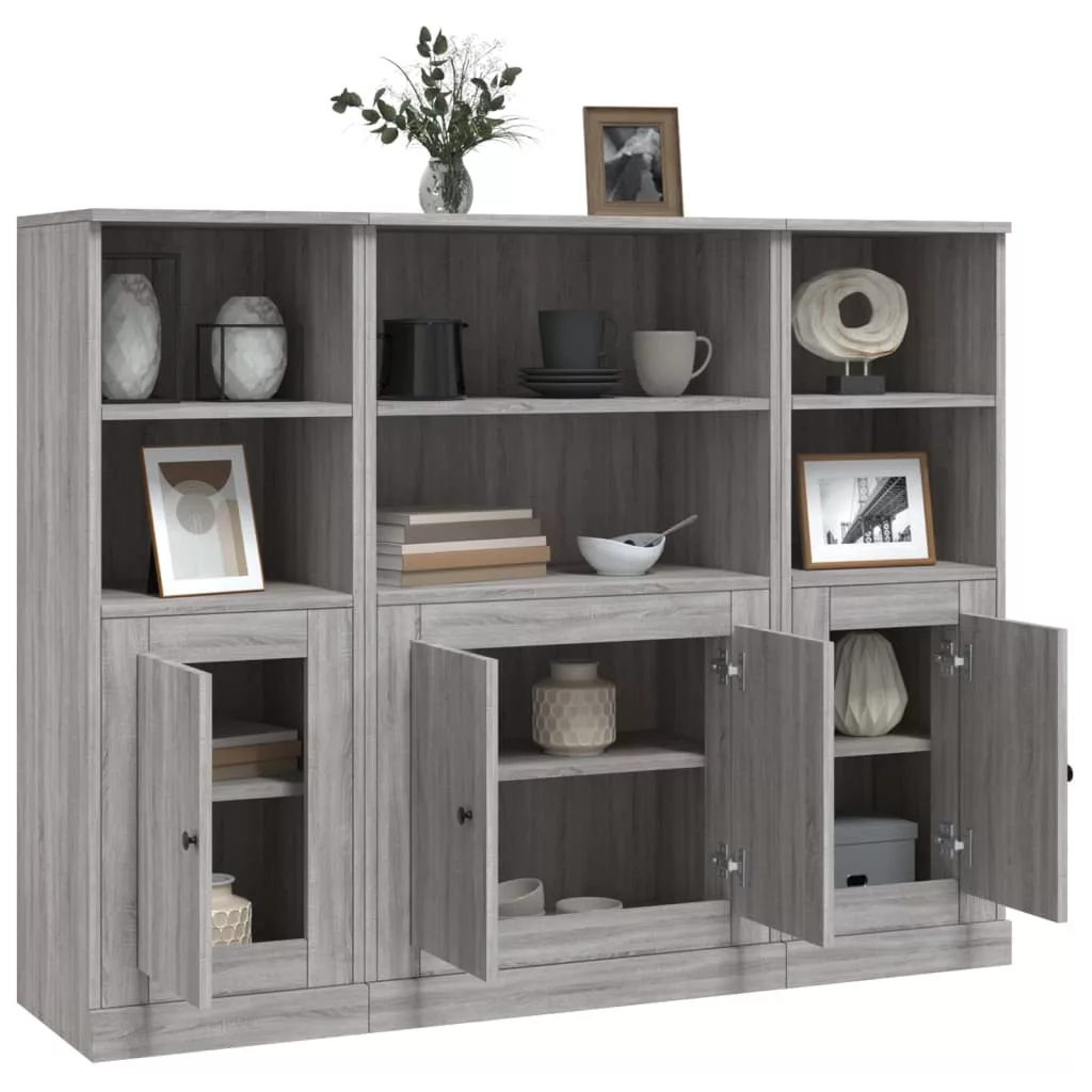 3 db szürke sonoma szerelt fa magasszekrény