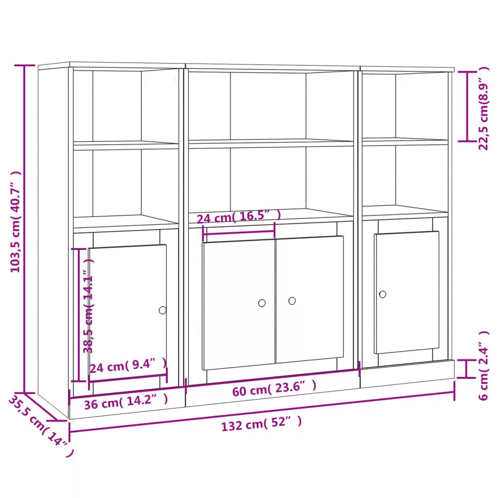 • Teljes mérete: 132 x 35,5 x 103,5 cm (Ho x Szé x Ma)